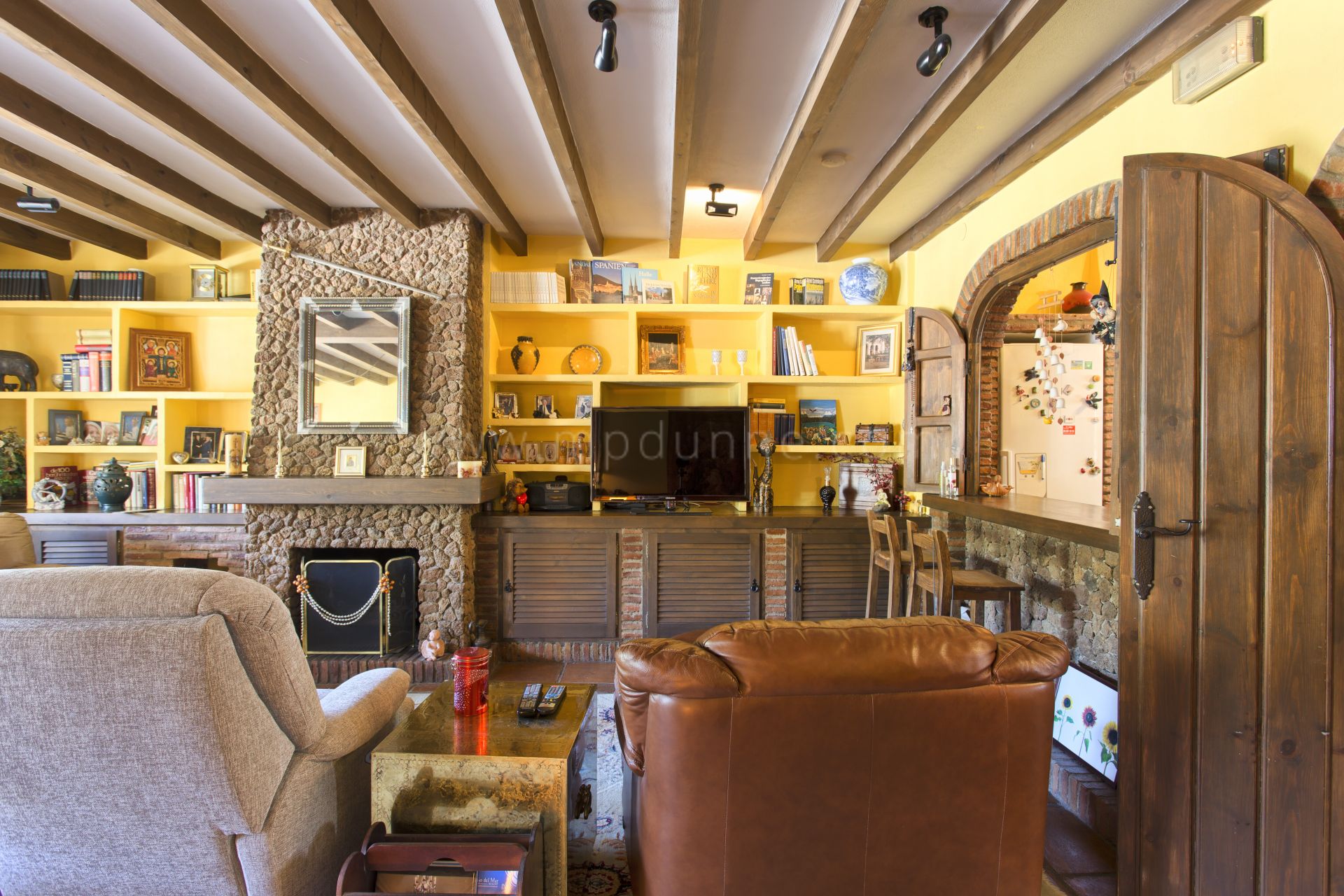 Das Erdgeschoss verfügt über ein einladendes Wohnzimmer mit Kamin und einen klar definierten Essbereich, der zu einer traditionellen Küche und einem Gäste-WC führt. Eine kleine Terrasse, die an den Wohnbereich angrenzt, bietet ruhige Ausblicke auf die Berge – ideal für den Morgenkaffee oder entspannte Abende.