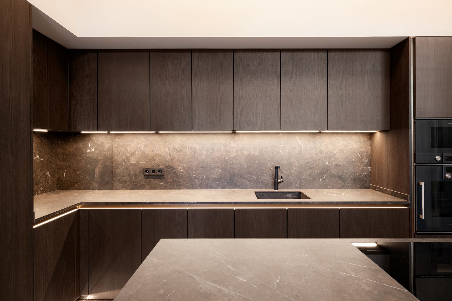 Die Siematic-Küche ist mit Gaggenau-Geräten ausgestattet und verfügt über Schiebetüren, die für Vielseitigkeit sorgen. Zu den hochwertigen Ausstattungsmerkmalen gehören Murano-Kronleuchter, Messingbeschläge und maßgefertigte Leisten. Ein hochmodernes Hausautomatisierungssystem steuert Beleuchtung, Sicherheit, Klima und die drehbare Garagenplattform über eine einzige App.