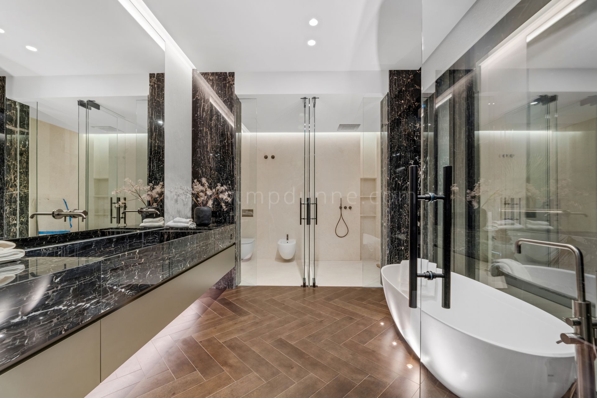 Im Erdgeschoss befinden sich zwei geräumige Schlafzimmer-Suiten, die Privatsphäre und Komfort bieten. Im Obergeschoss liegt die Hauptsuite mit Ankleidebereich, luxuriösem Bad und privater Terrasse mit Blick auf die Küste. Drei weitere großzügige Suiten komplettieren diese Ebene.