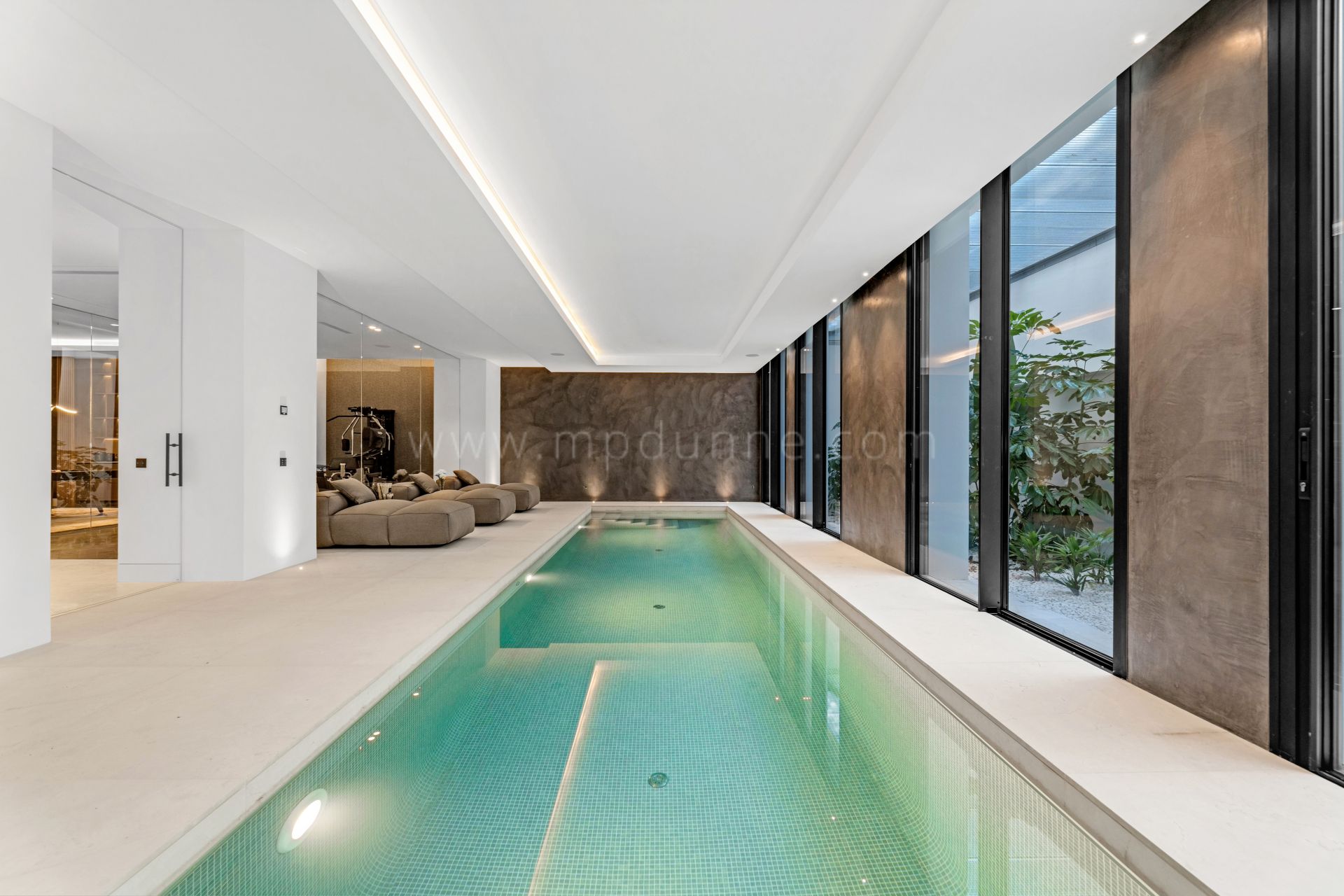 Im Außenbereich umgeben angelegte Gärten ein großes Schwimmbecken und verbinden die moderne Architektur der Villa mit mediterraner Vegetation. Villa Allure bietet höchsten Luxusstandard in einer der exklusivsten Lagen Marbellas und vereint Raum, Privatsphäre und architektonische Exzellenz.