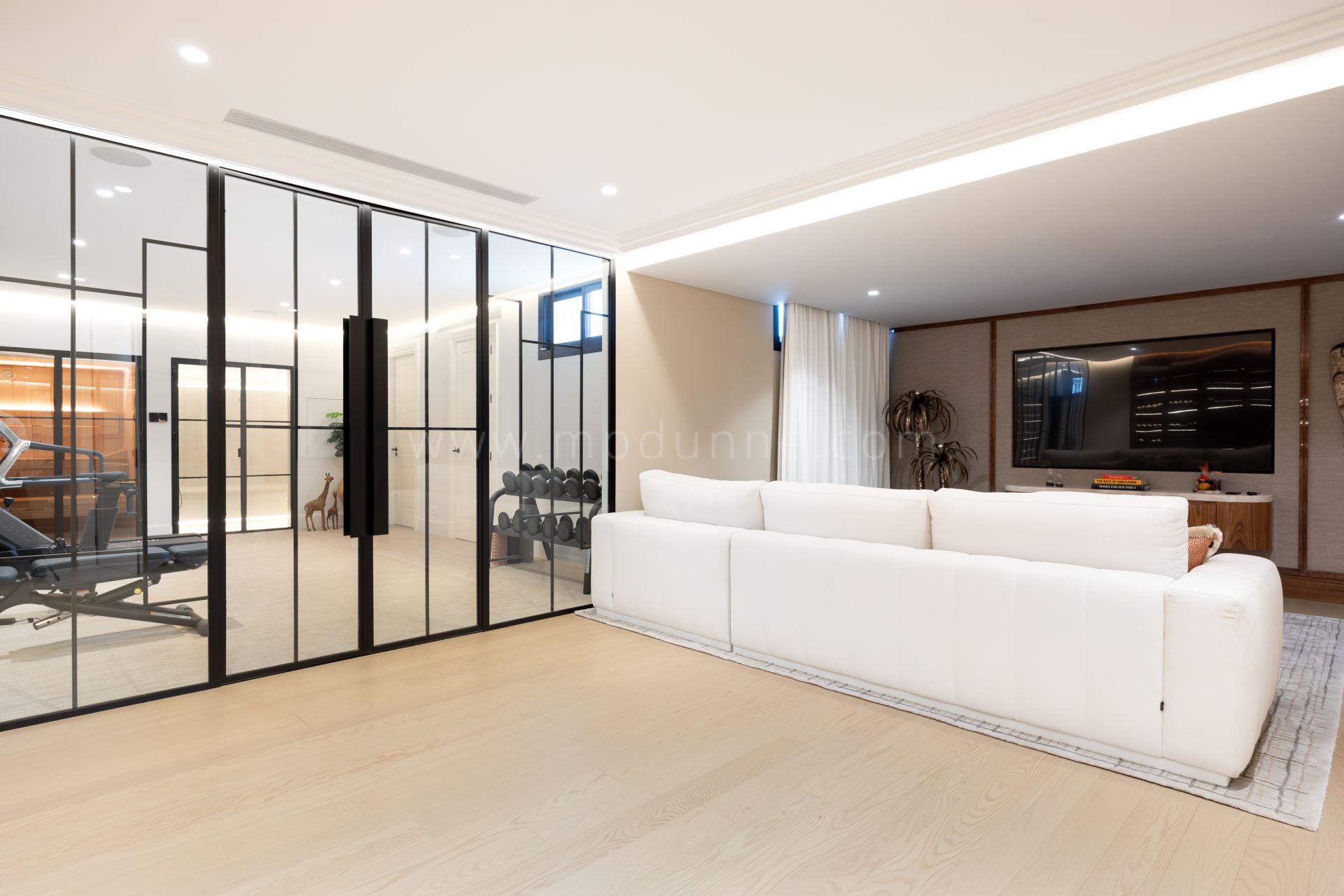 Für modernes Wohnen und Freizeitgestaltung ausgestattet, verfügt die Villa über ein voll ausgestattetes Fitnessstudio, einen Spielbereich bietet den Bewohnern eine umfassende Umgebung für Entspannung und Erholung.