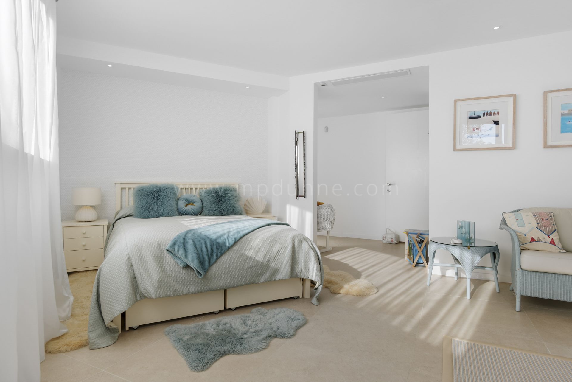 Das Raumkonzept umfasst eine gut ausgestattete Küche, helle, gut geschnittene Schlafzimmer sowie eine Hauptsuite mit privater Terrasse und eigenem Bad. Ein separates Aseo steht Gästen zur Verfügung.