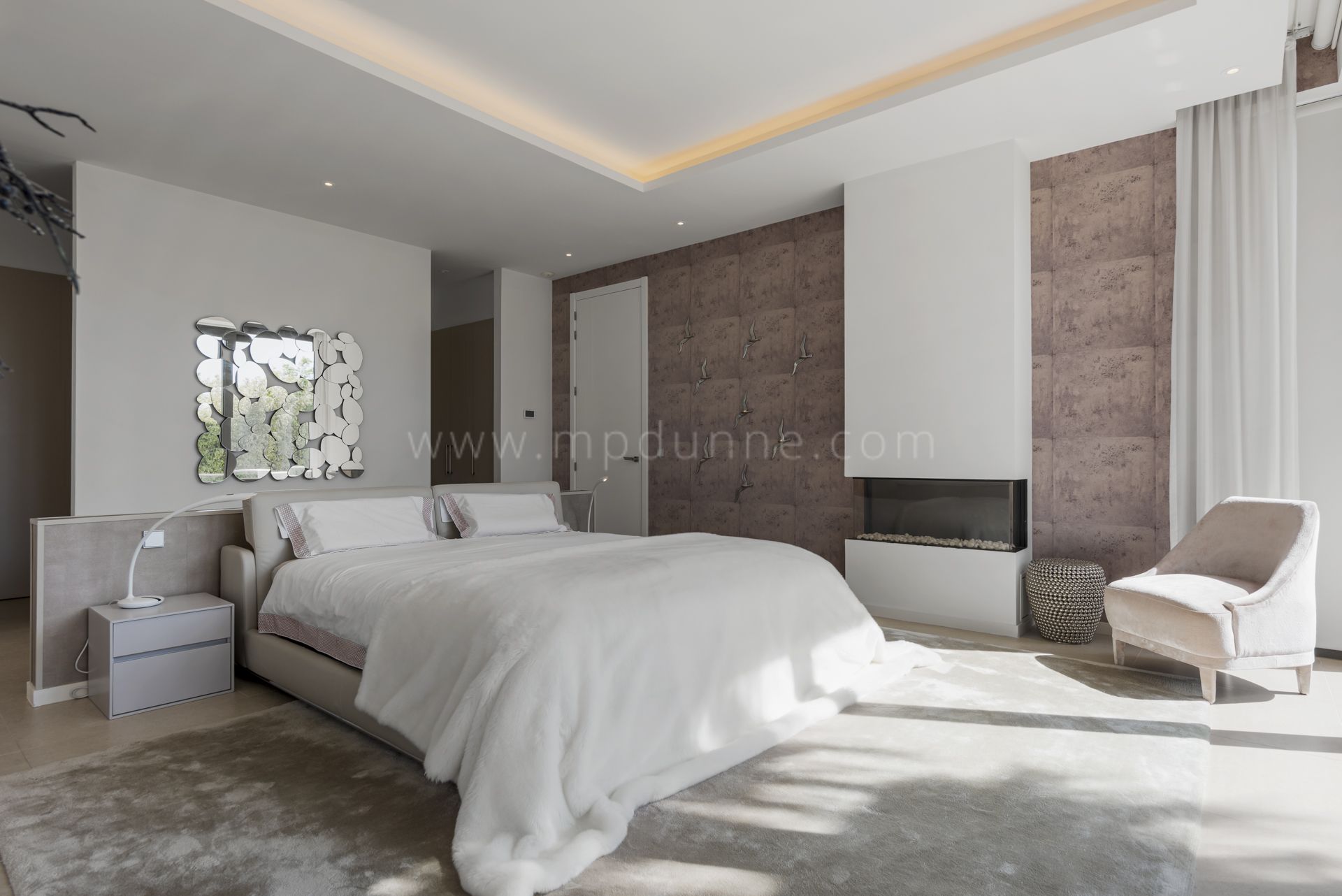 Diese moderne Villa befindet sich in der gesicherten Wohnanlage El Herrojo in La Quinta und bietet einen atemberaubenden Blick auf das Meer sowie ein elegantes, zeitgemäßes Design. Die Architektur ist darauf ausgerichtet, natürliches Licht optimal zu nutzen und Großzügigkeit zu betonen – mit hohen Decken und raumhohen Fenstern, die den weiten Blick über die Mittelmeerküste einrahmen.