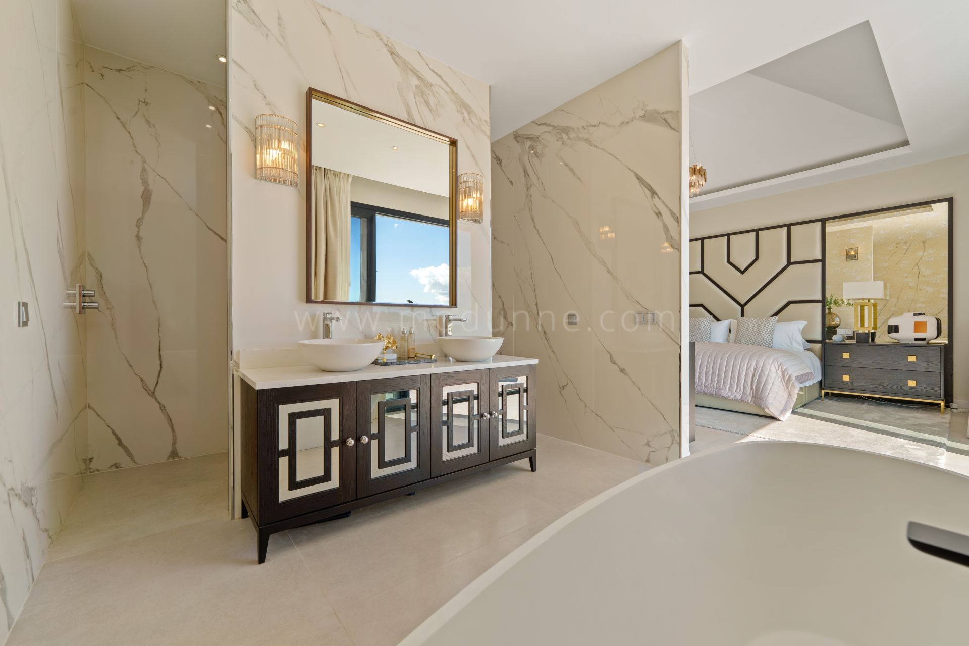 Im Inneren bietet die Villa helle, gut proportionierte Schlafzimmer, viele davon mit privaten Terrassen und modernen Ausstattungen. Das Untergeschoss ist auf Freizeit ausgerichtet und verfügt über einen Kinoraum mit Bar, Billardtisch und grosser Leinwand, ideal für Abendunterhaltung.