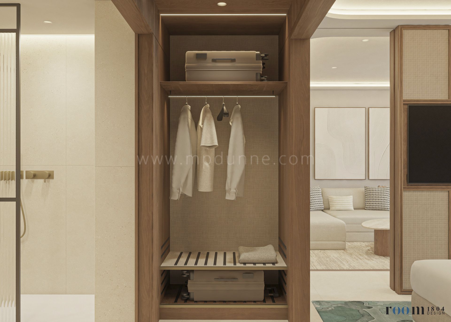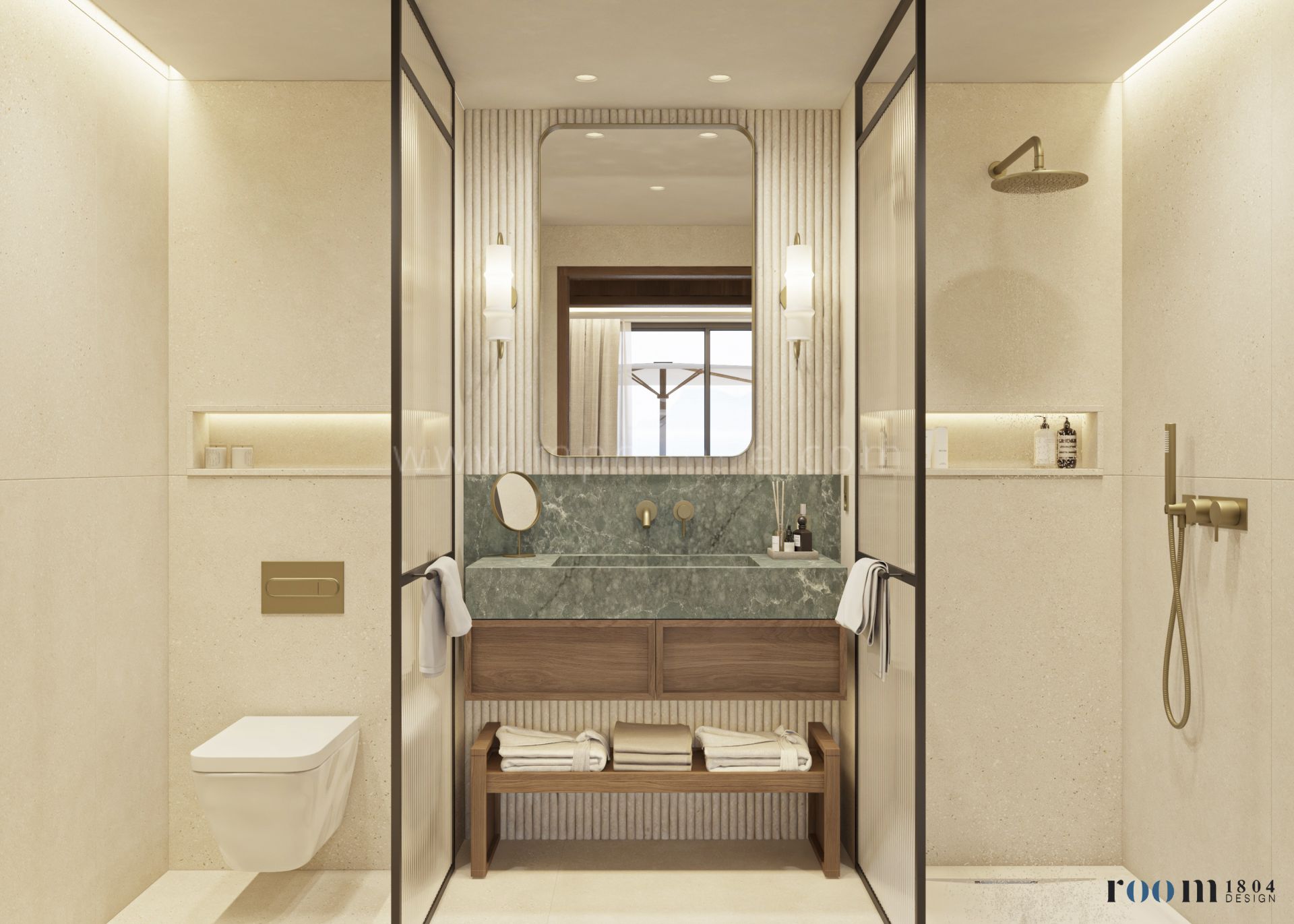 Das Hauptschlafzimmer wurde als ruhiger, gut proportionierter Raum konzipiert, oft mit direktem Zugang zur Terrasse oder zum Garten. Einbauschränke sorgen für diskreten Stauraum, während das Bad mit Spa inspiriertem Design, edlen Oberflächen und einer beruhigenden Atmosphäre überzeugt. Jedes Detail steht für dezente Eleganz und Benutzerfreundlichkeit.