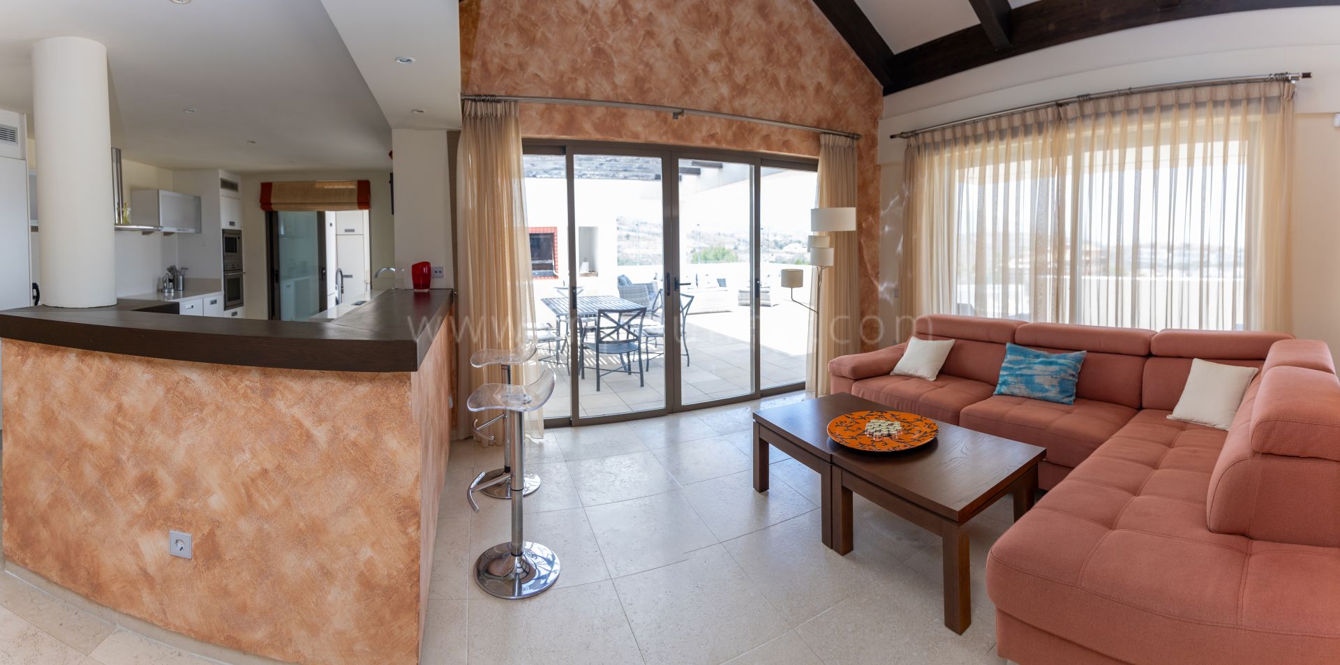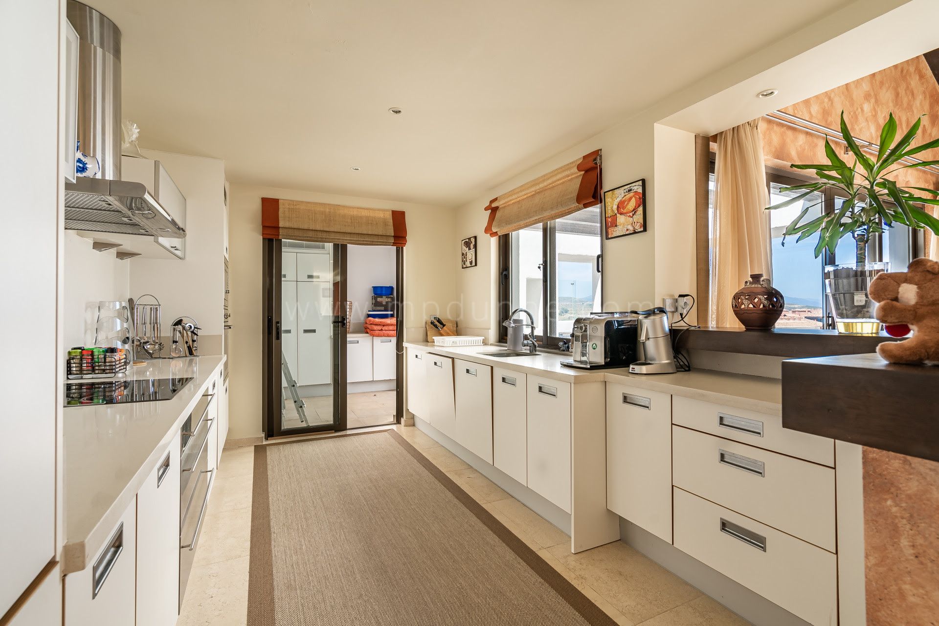 Dieses außergewöhnliche Penthouse befindet sich in der Anlage Alanda Flamingos in Benahavis und bietet Panoramablicke auf das Mittelmeer, die grünen Golfplätze und die umliegenden Berge. Die Innenraumaufteilung wurde sorgfältig gestaltet, um natürliches Licht und einen fließenden Raumfluss zu maximieren, mit einem großzügigen Wohnbereich, der sich zu einer weitläufigen Terrasse öffnet – ideal für den Morgenkaffee oder abendliche Unterhaltung.