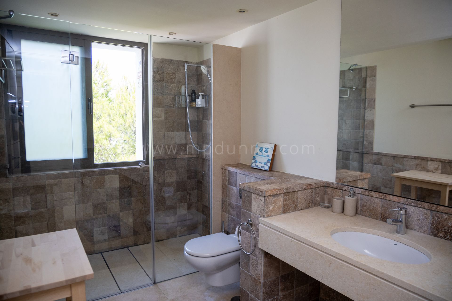 Die Immobilie verfügt über drei gut proportionierte Schlafzimmer und vier Badezimmer, darunter drei en-suite, die Komfort mit zeitgemäßen Ausstattungen verbinden. Die Hauptsuite bietet Privatsphäre und Ruhe, ergänzt durch elegante Einbauschränke.