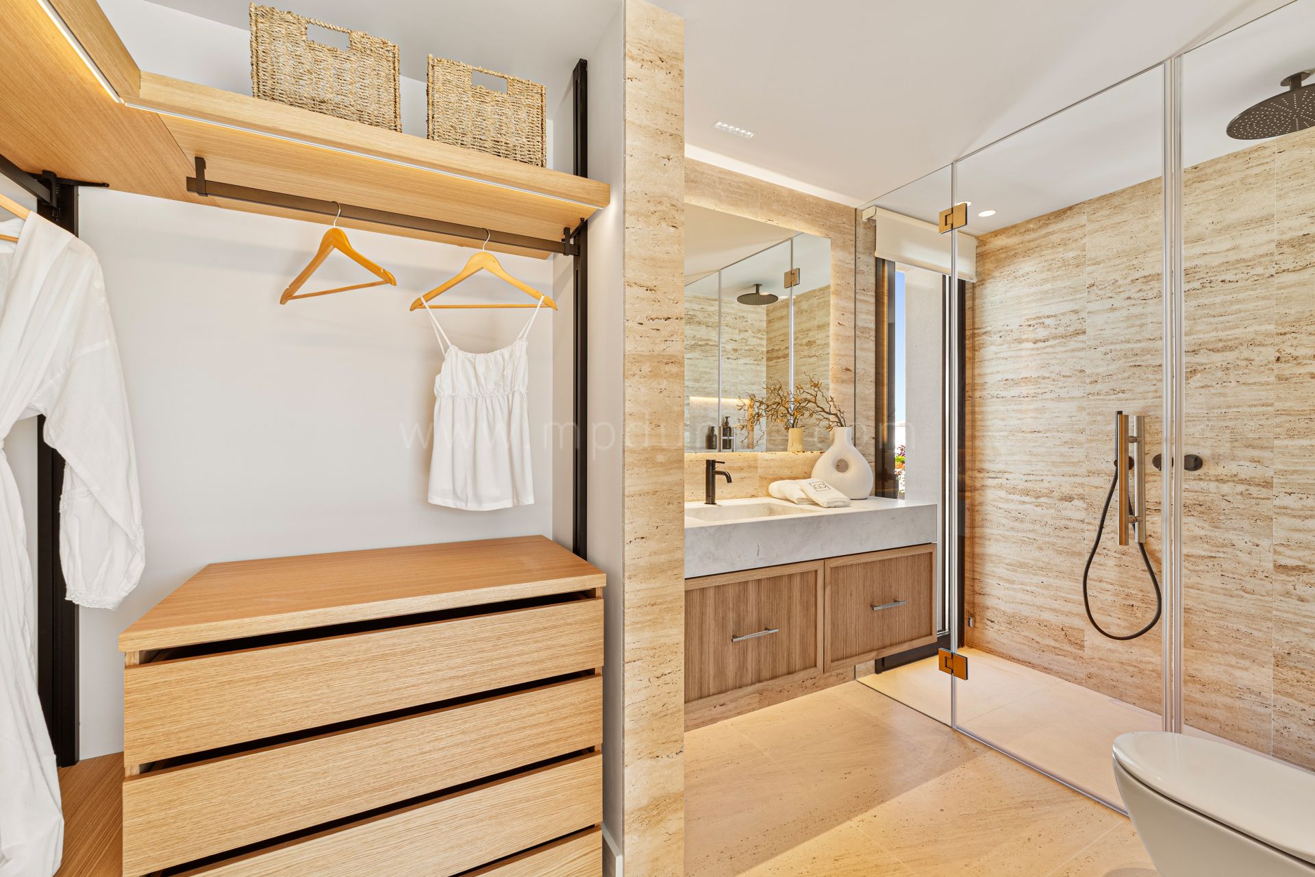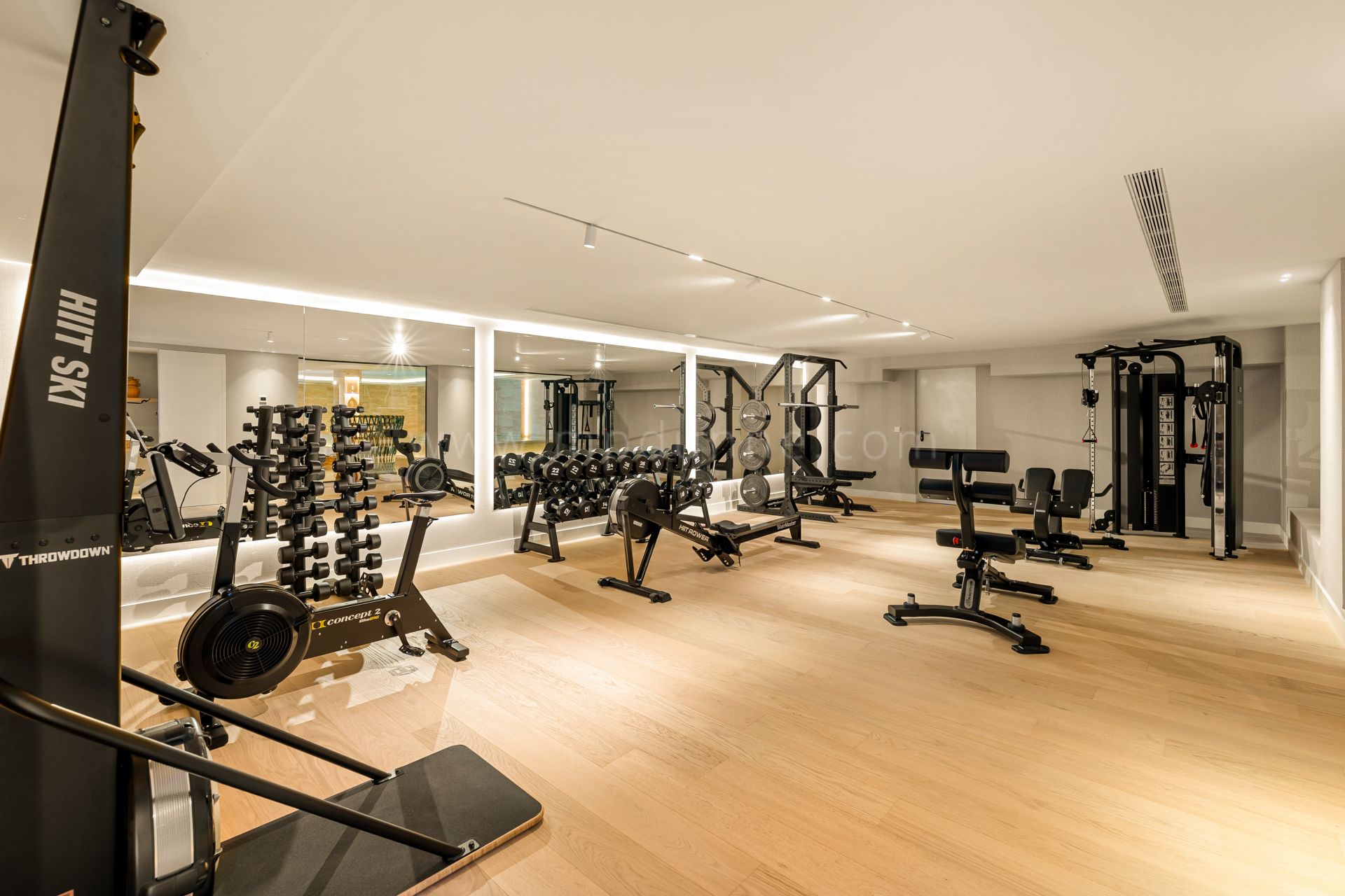 Villa Azteca ist ein geräumiges und elegant gestaltetes Familienhaus, ideal gelegen im begehrten Aloha-Gebiet von Marbella. Der Grundriss der Villa ist sorgfältig geplant und bietet gut proportionierte Räume, die harmonisch ineinander übergehen – perfekt für das Familienleben und geselliges Beisammensein. Große Fenster lassen viel Tageslicht herein und betonen die warmen Naturmaterialien sowie dezente Holzakzente im gesamten Innenbereich.