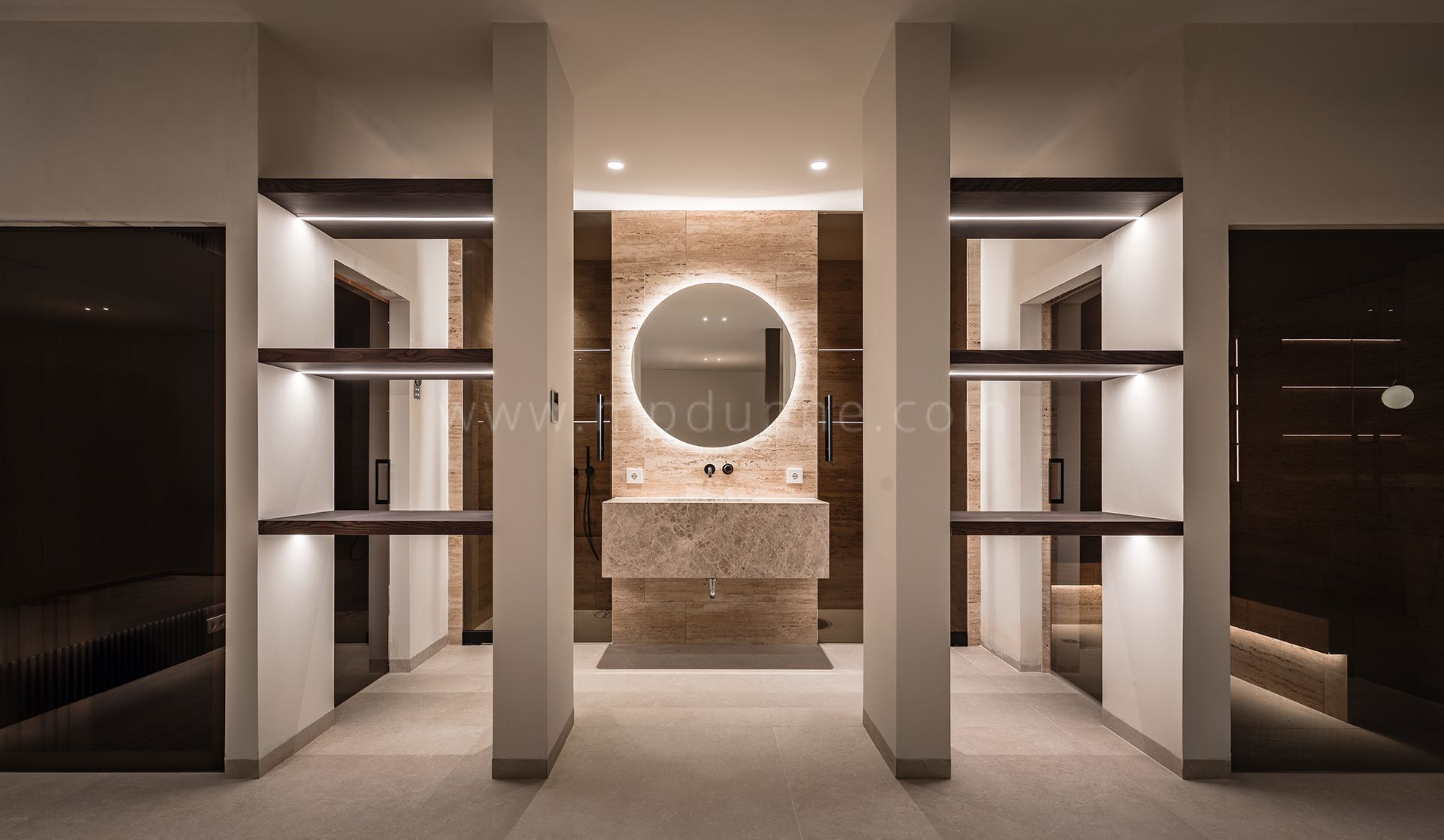 Zu den praktischen Merkmalen zählen ein Aufzug, der alle Etagen verbindet, eine Garage für drei Fahrzeuge sowie zwei zusätzliche Außenstellplätze und der Vorteil eines Neubaus, der sofort bezugsfertig ist. Nur wenige Minuten von Golfplätzen, der Küste und allen Annehmlichkeiten entfernt, verbindet die Villa Elemento eine begehrte Adresse in Benahavís mit modernem mediterranem Wohnen.