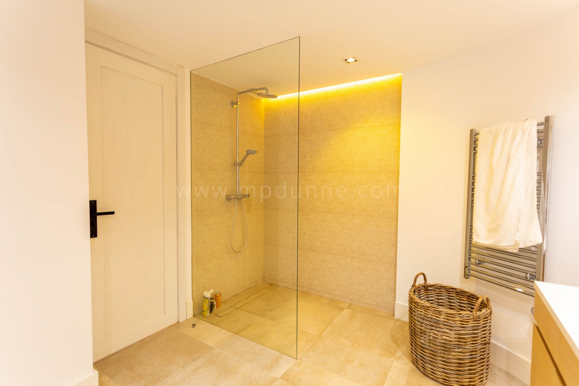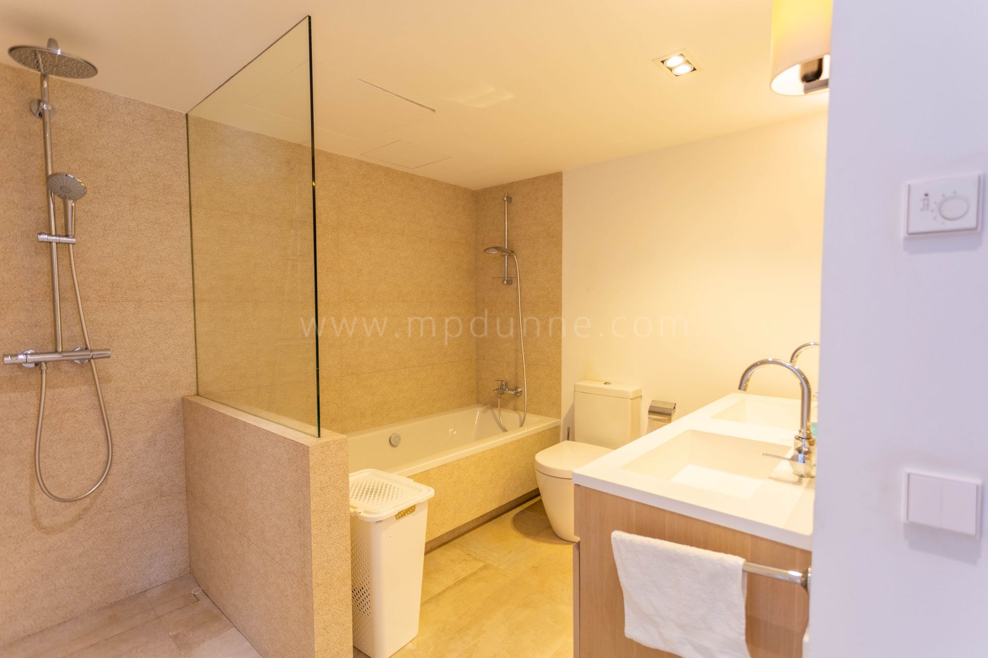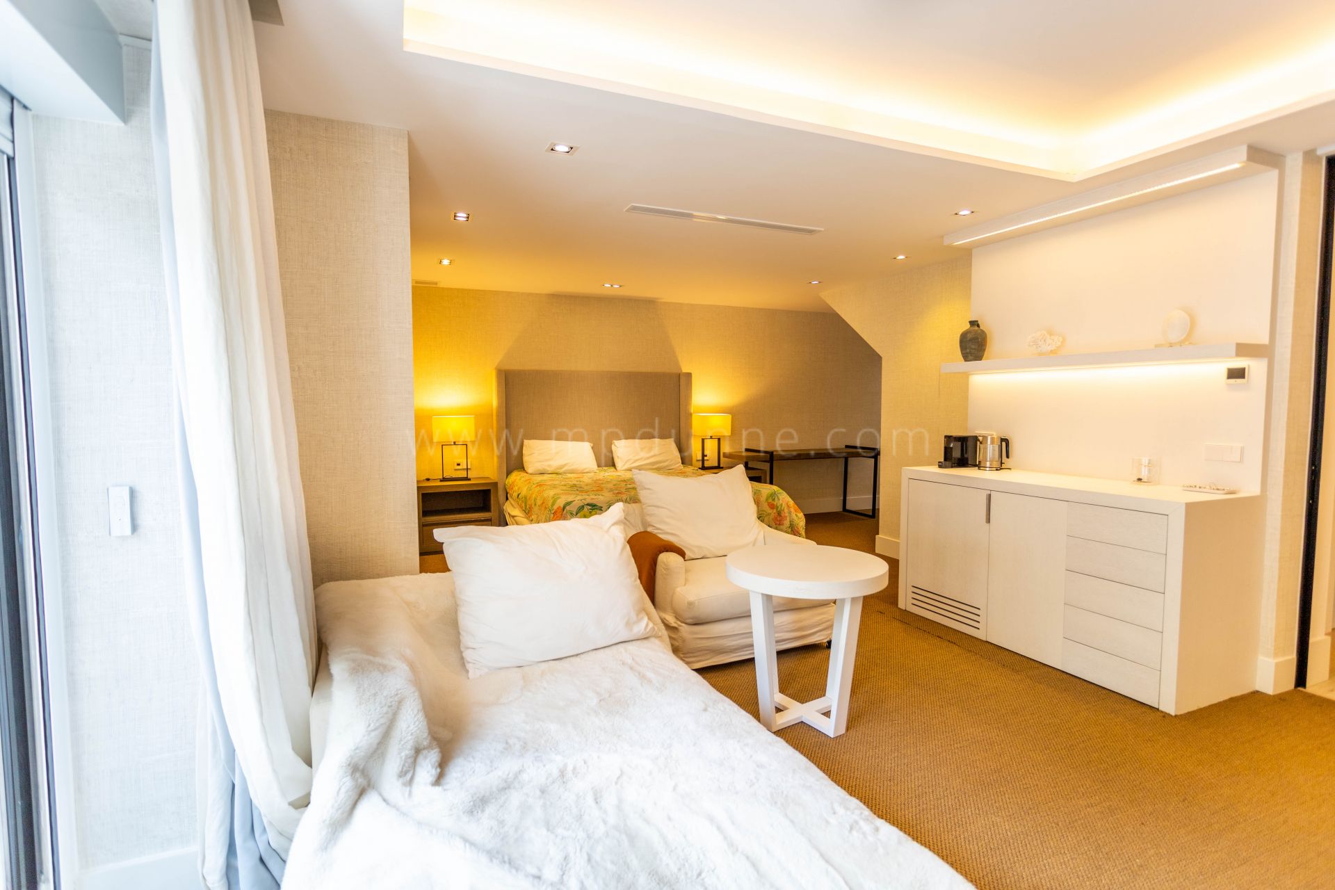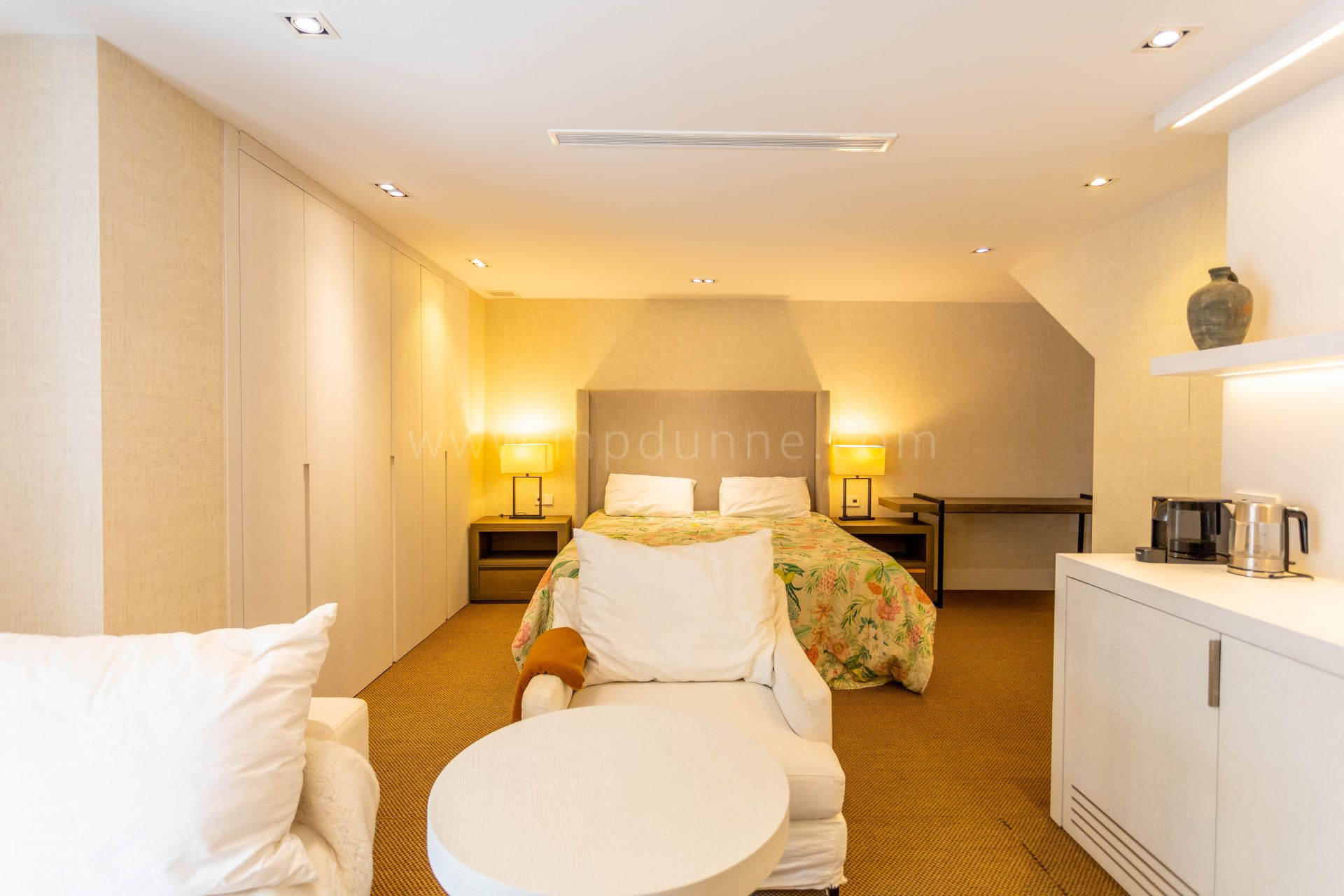 Le niveau inférieur, accessible par un large escalier, propose deux grandes suites avec salle de bain et accès direct à des terrasses privées, créant un véritable havre de paix pour vos invités.