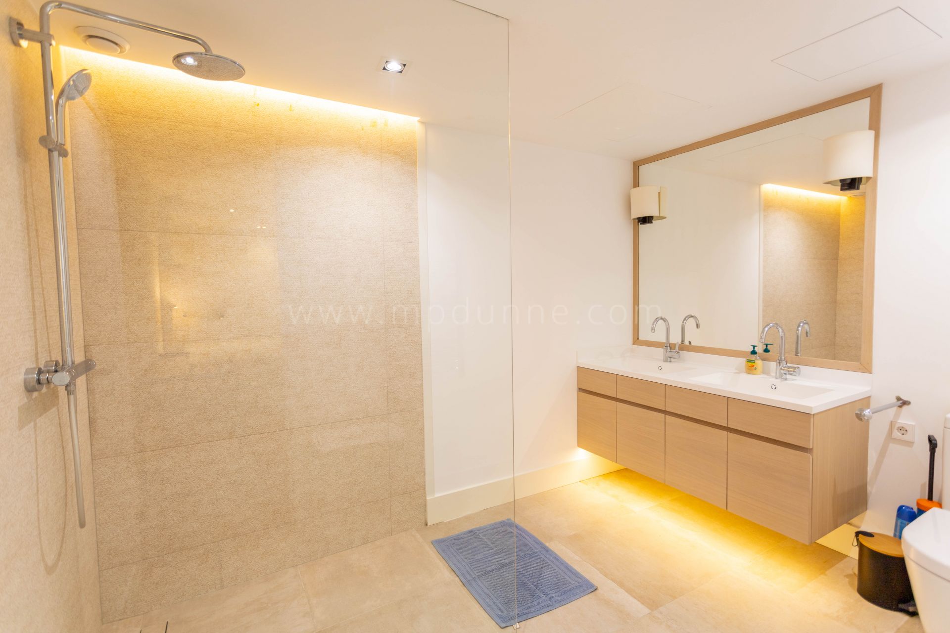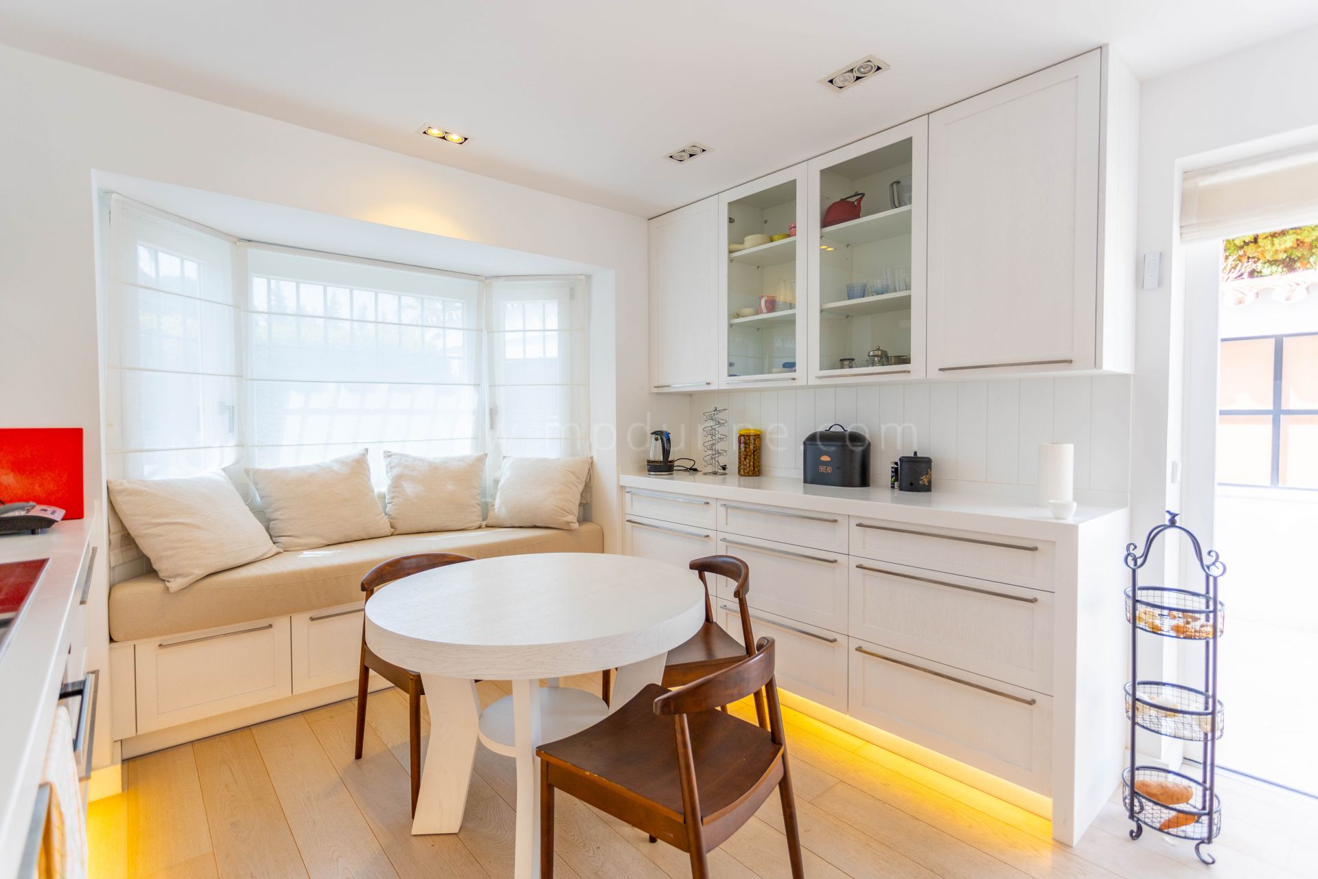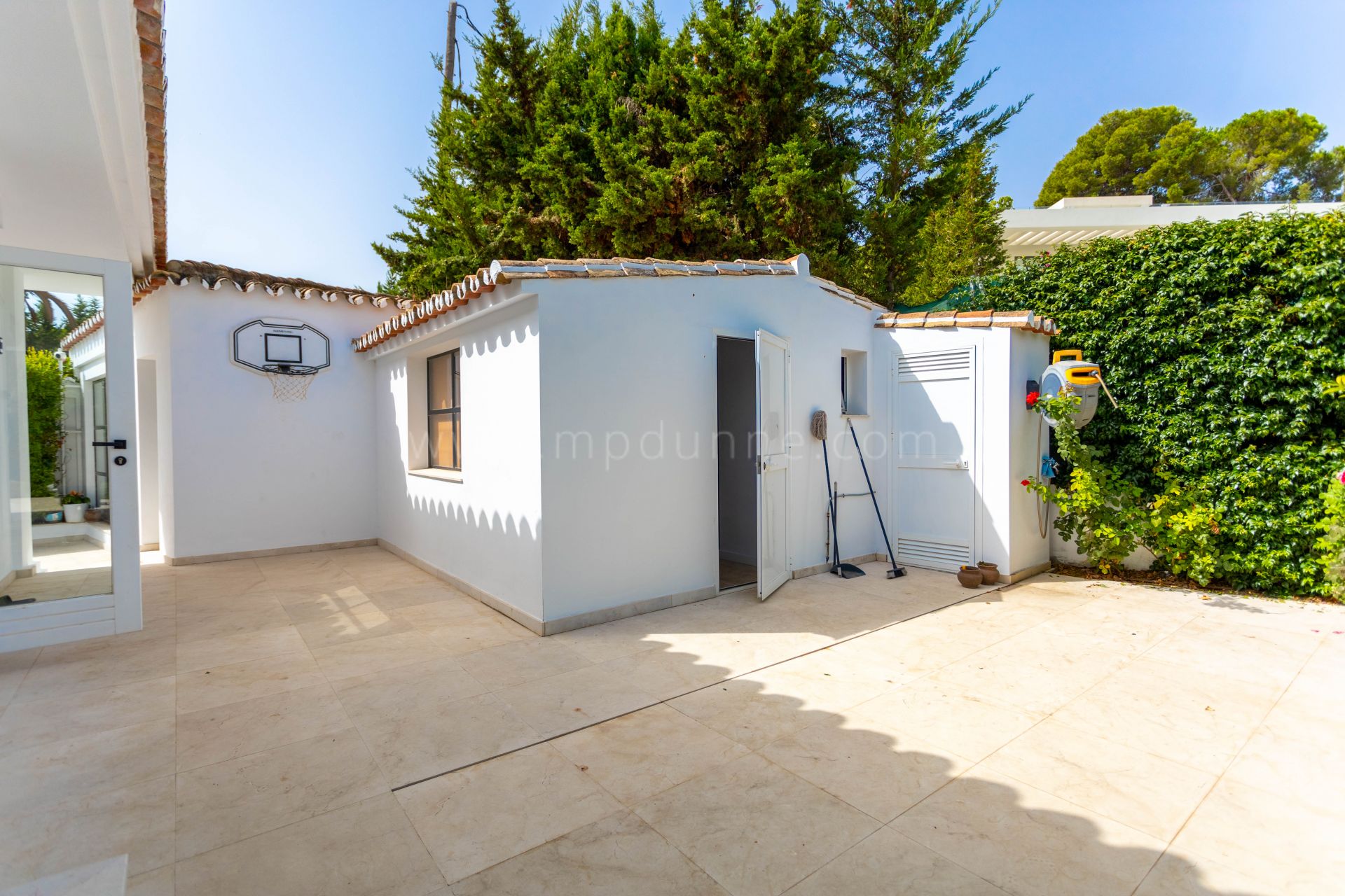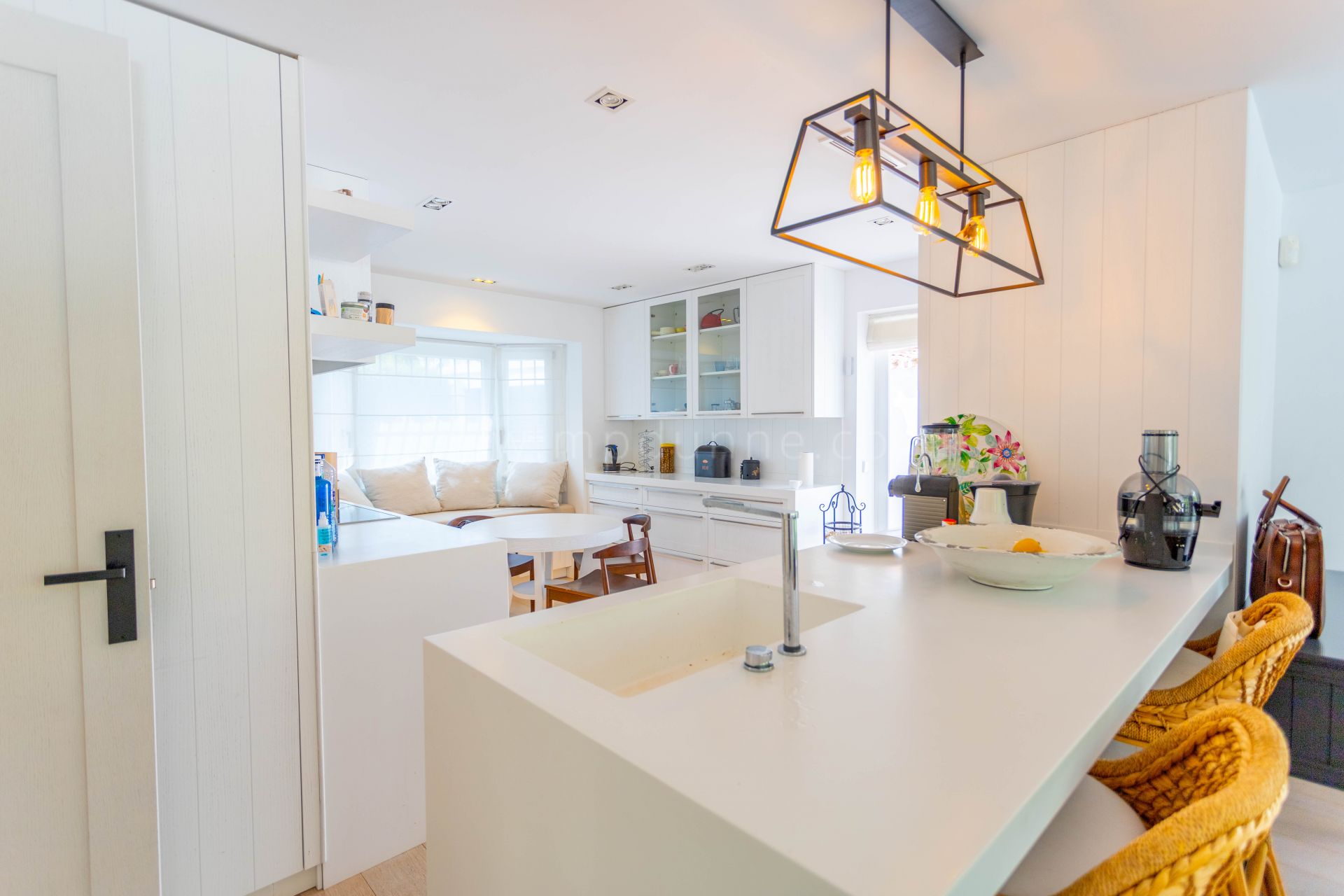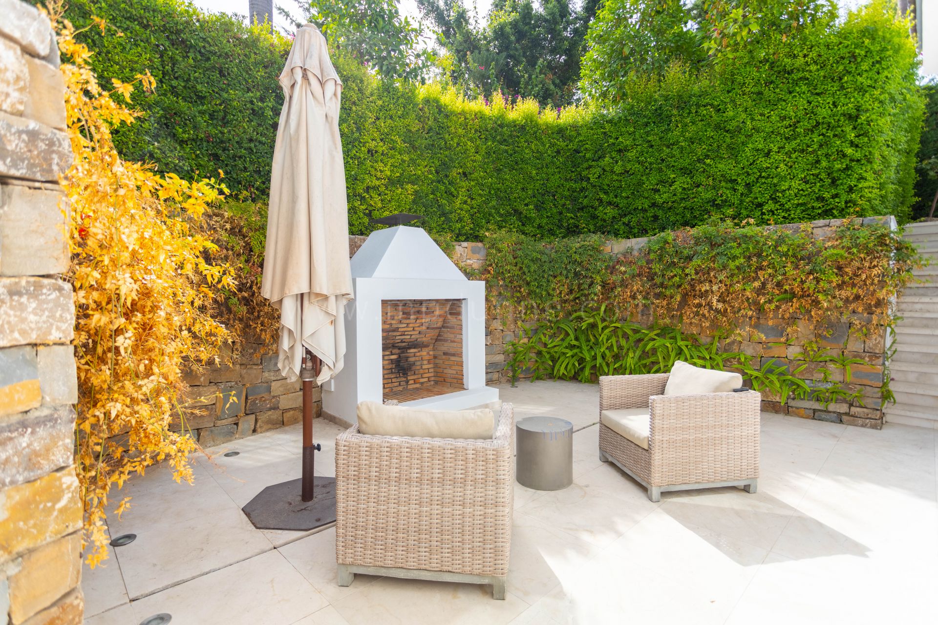 La villa s’ouvre sur un élégant hall d’entrée menant à un spacieux salon-salle à manger ouvert avec une cuisine familiale moderne. De grandes baies vitrées donnent accès à une terrasse couverte avec espace repas extérieur, idéale pour recevoir et profiter du climat ensoleillé de Marbella tout au long de l’année.