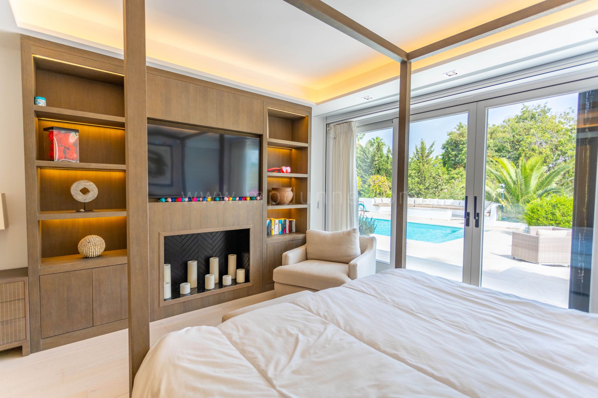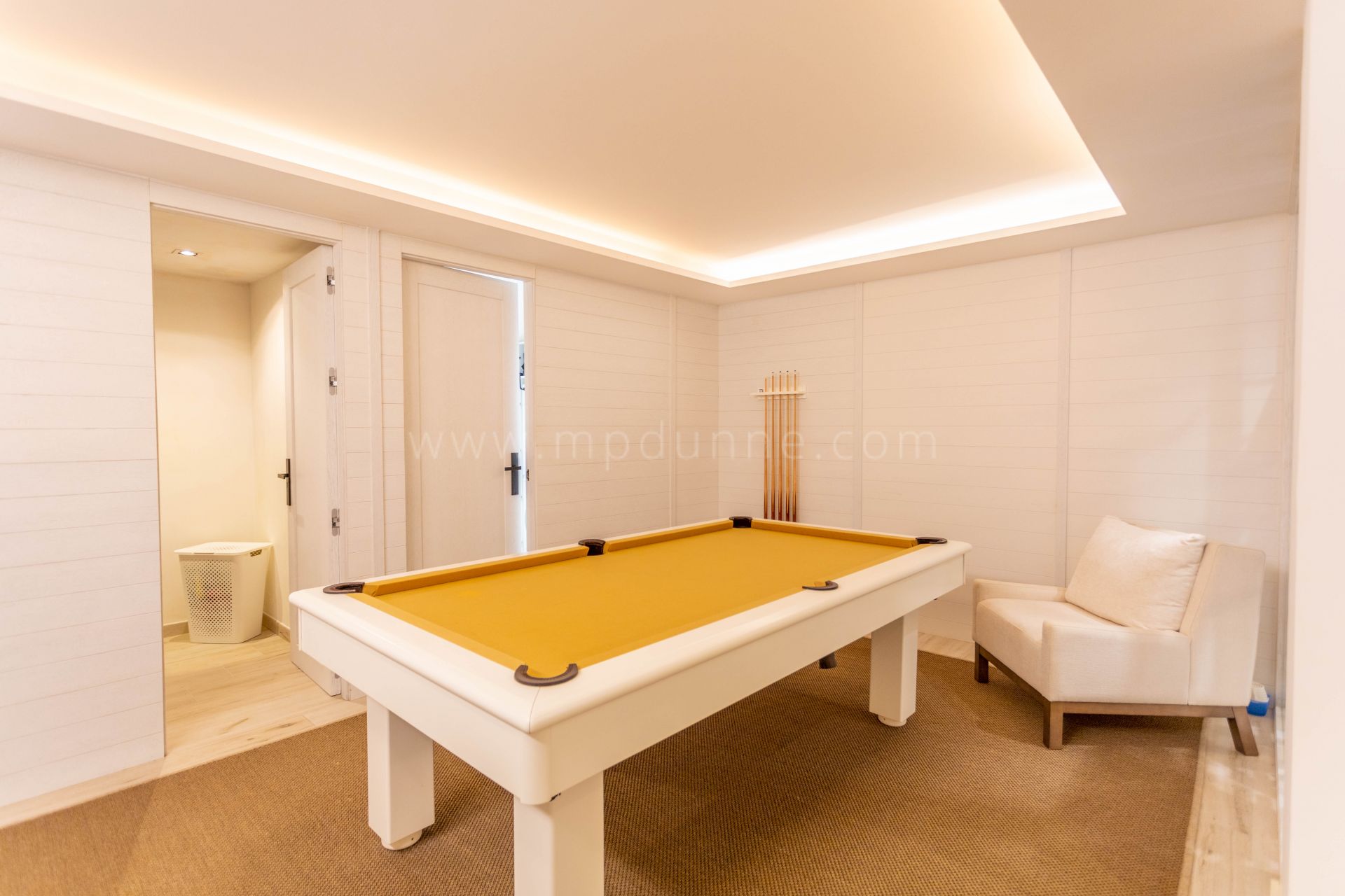 L’extérieur dispose d’une grande piscine, d’un petit jacuzzi, d’un espace détente et d’un sauna privé – parfait pour se relaxer. Une maison indépendante pour le personnel complète la propriété.