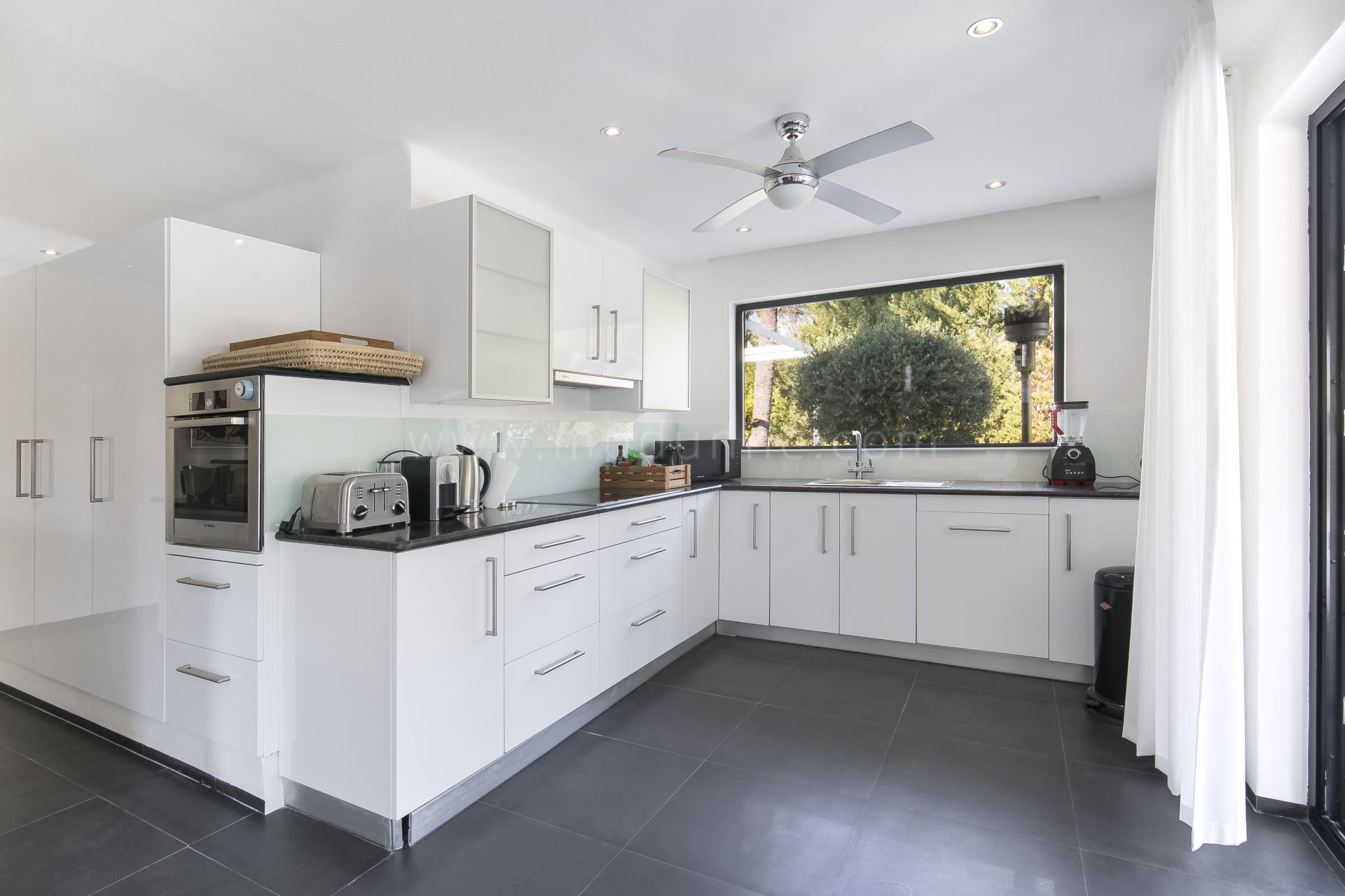 Cuisine toute neuve réaménagée donnant sur la salle à manger et le jardin. Superbes vues sur La Concha depuis le salon. Vues sur jardin, piscine, jacuzzi. Il y a une galerie de vins.