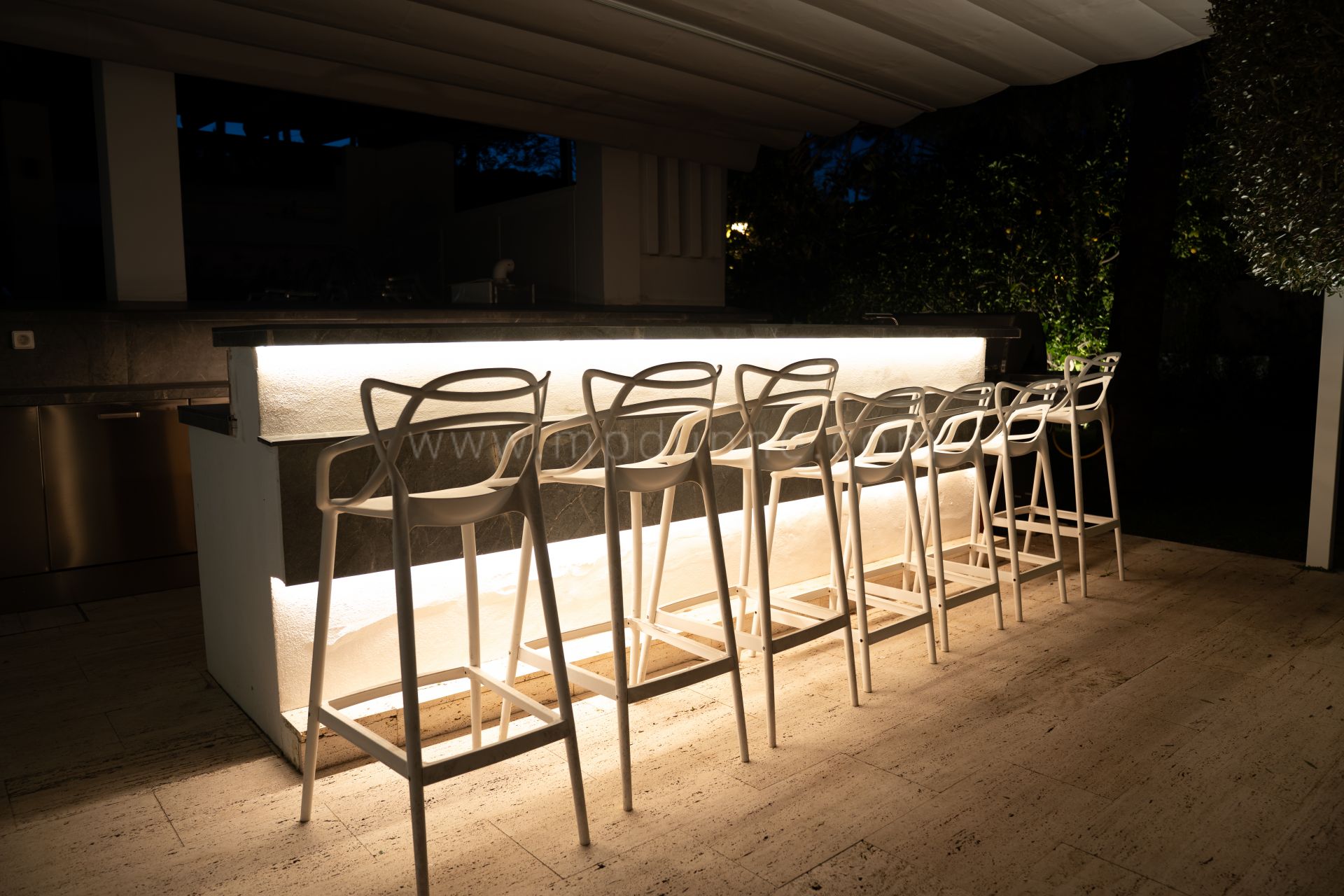 Bel espace bar extérieur pour se prélasser lors des douces soirées d’été.
