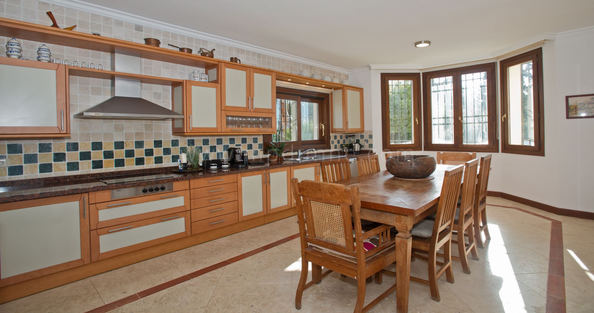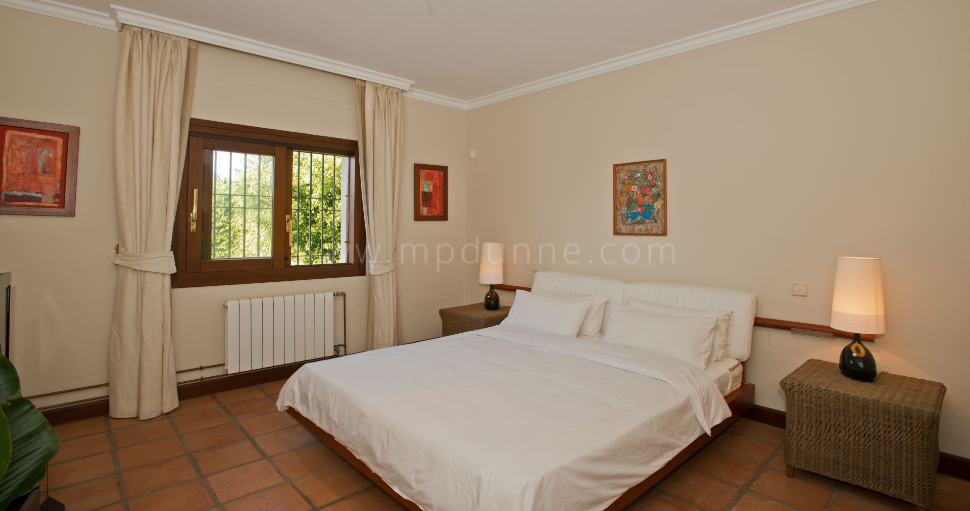 La villa est orientée sud-ouest et très lumineuse. Au rez-de-chaussée il y a un grand salon ouvert avec salle à manger, menant à une grande terrasse couverte, donnant sur la piscine et le magnifique jardin. Il y a une grande cuisine entièrement équipée avec baie vitrée donnant sur le jardin. Il y a aussi 2 chambres avec salle de bains et salles de bains à ce niveau.