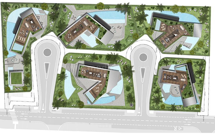 Cada residencia incluye amplias zonas al aire libre, una piscina laguna privada conectada a una piscina principal y jardines diseñados en homenaje a la pasión de Lagerfeld por la naturaleza. Los niveles inferiores albergan espacios de bienestar como gimnasio y spa, además de áreas familiares diseñadas para la comodidad y la privacidad. Los dormitorios, incluida la suite principal, se abren directamente a terrazas privadas que se convierten en santuarios de tranquilidad.
