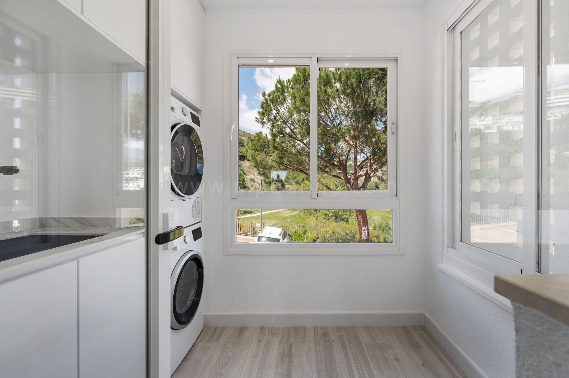 Set within Altos de La Quinta, this bright middle-floor apartment offers a calm residential setting with open views towards the Mediterranean. Its south-east orientation brings in natural light throughout the day, enhancing the sense of space across the interiors.