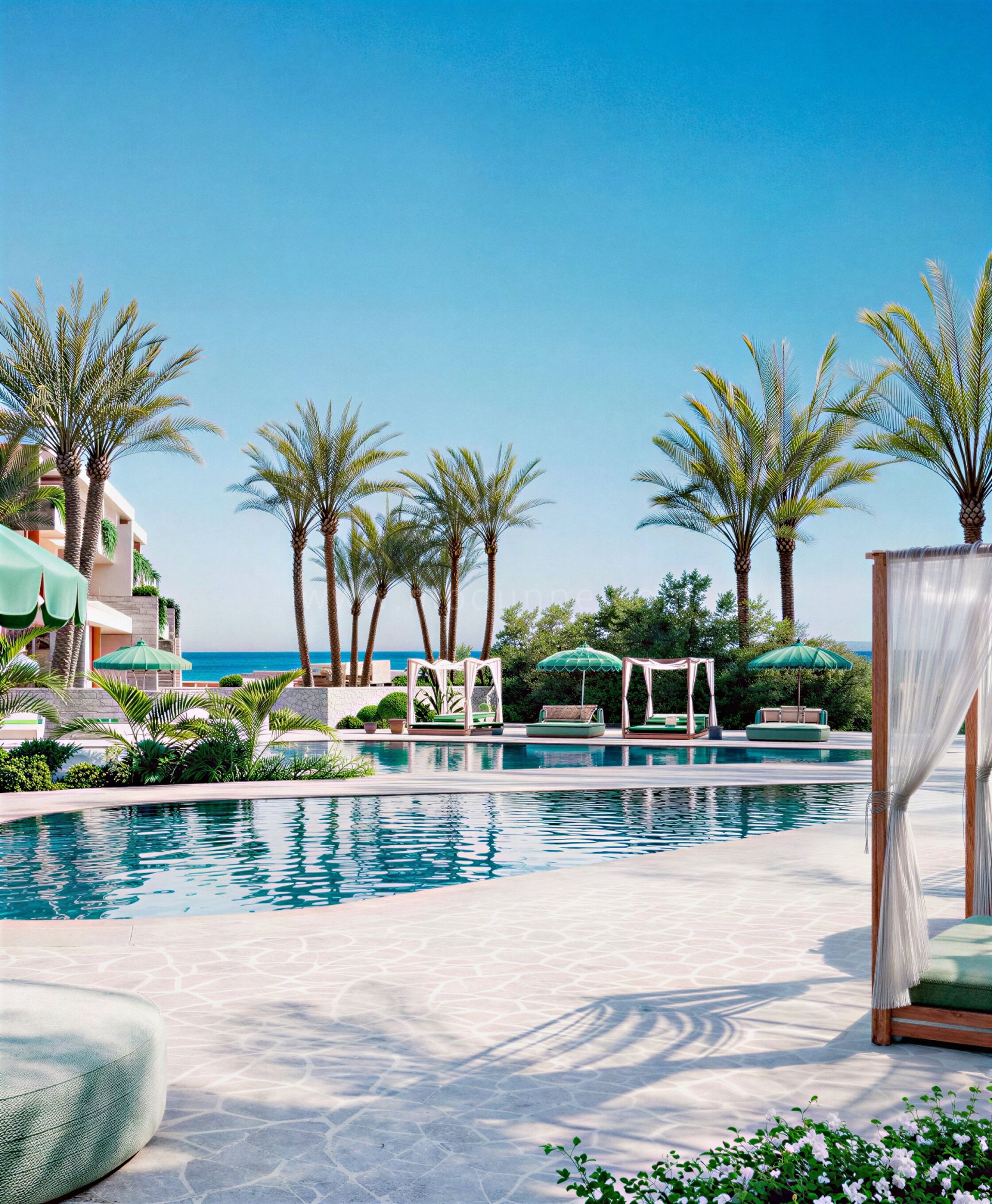 At the heart of the community lies an elegant central plaza, home to a resort-style swimming pool, a serene wellness spa, a discreet fitness suite and exquisitely landscaped gardens. Vehicular circulation is entirely underground, ensuring privacy, aesthetic purity and a tranquil environment throughout the grounds. Residents will also enjoy a private paddle court, concierge services and an exclusive owners’ club.