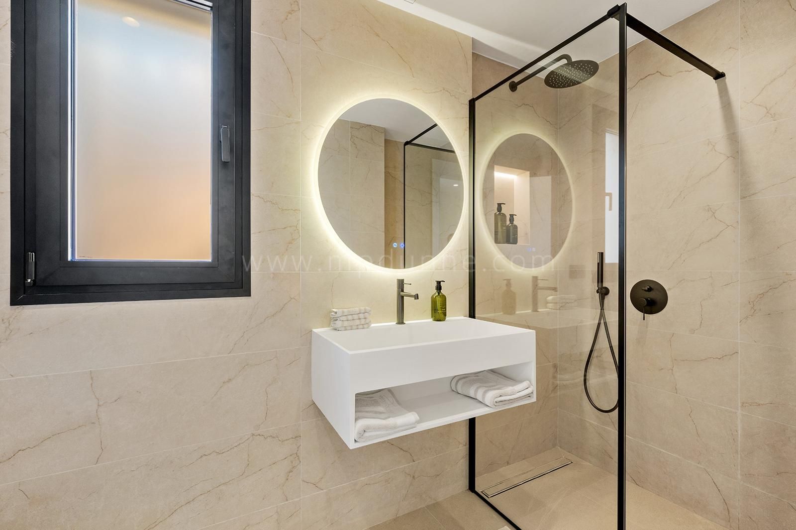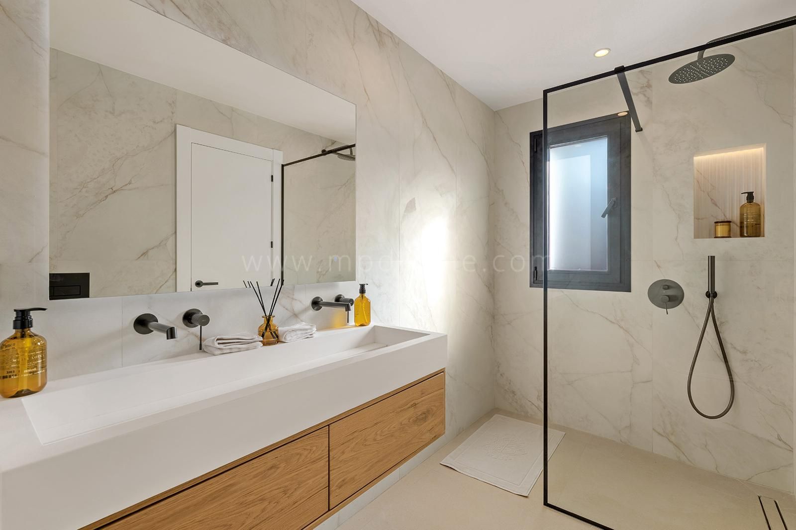 Upstairs, the main bedroom suite enjoys a walk-in wardrobe and a private terrace, accompanied by two additional guest bedrooms. The home is ideally placed for easy access to Marbella’s beaches, fine dining, luxury retail, and top international schools, offering an elegant interior for year-round living or a secure holiday retreat.