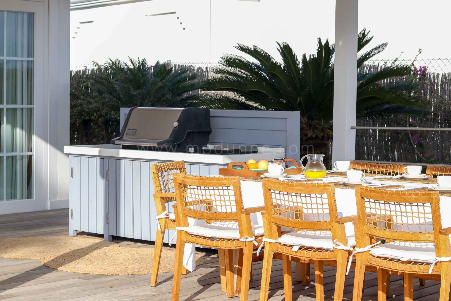 The outdoor space includes a saltwater pool, BBQ zone, and a shaded chill-out area with panoramic views of the surrounding mountains and golf— ideal for family life or casual entertaining. West-facing terraces at the rear of the property provide the perfect setting to enjoy the evening sun.