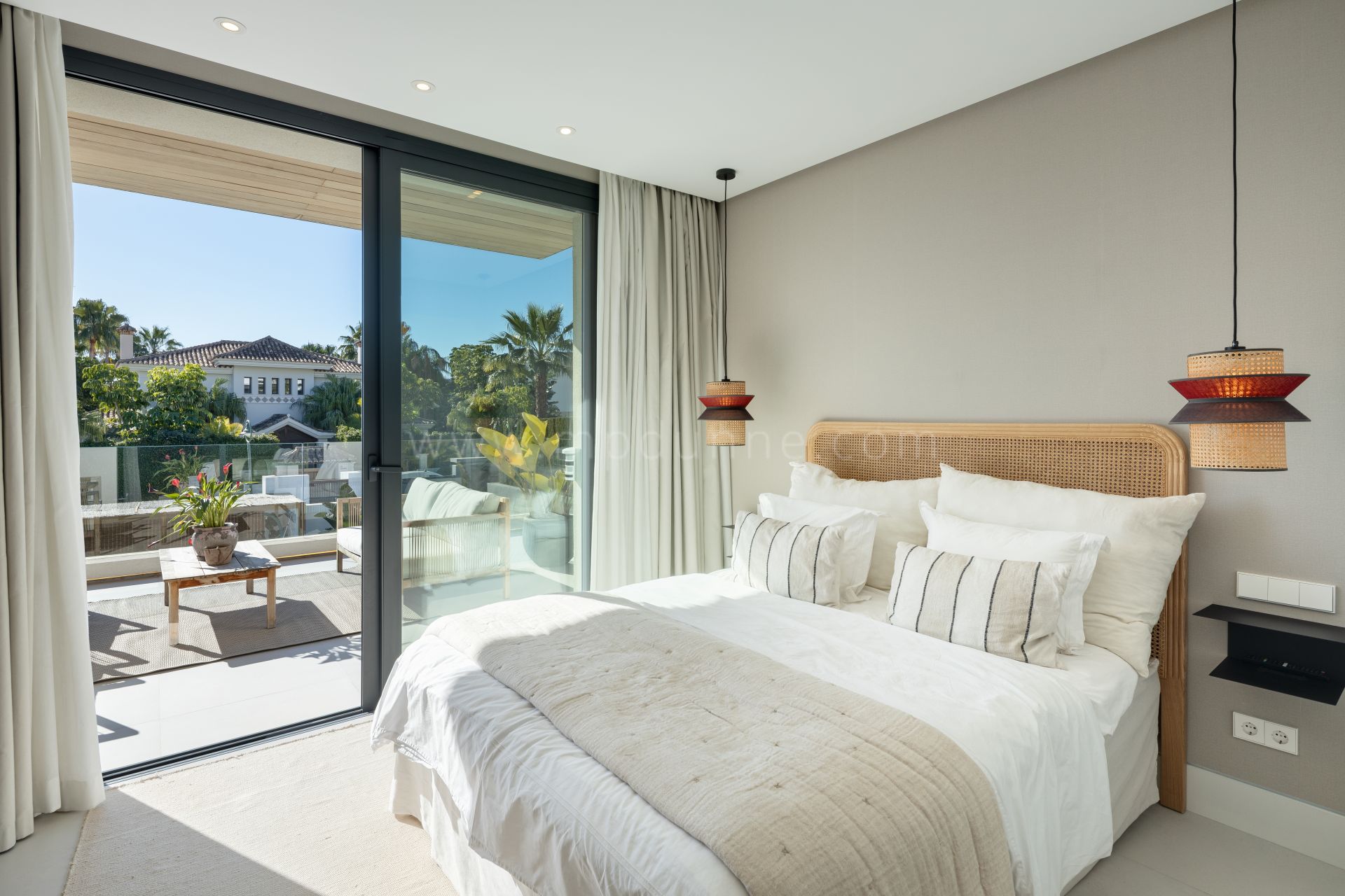 Set in the prestigious La Cerquilla neighbourhood of Nueva Andalucía, this exceptional five-bedroom villa offers modern architecture combined with natural materials, creating a connection between indoor and outdoor living. Designed by a renowned architect, the property integrates advanced technology and high-quality finishes, achieving an environmentally conscious and energy-efficient home with a level-A rating.