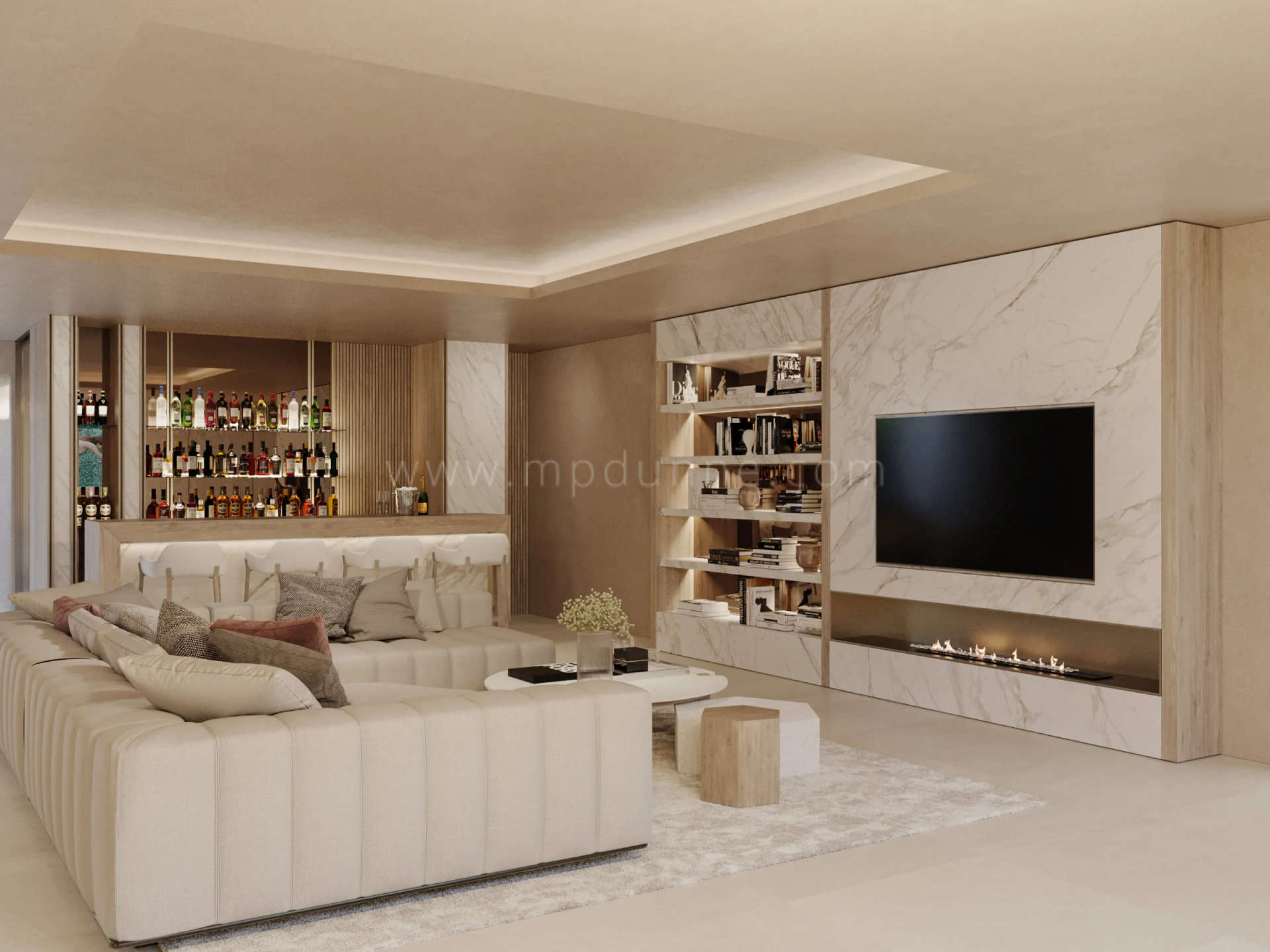 The lower level features a fully equipped gym, spa area with sauna and Hammam, a stylish bar and games room, and lift access to all floors — balancing wellness, leisure and convenience in equal measure.