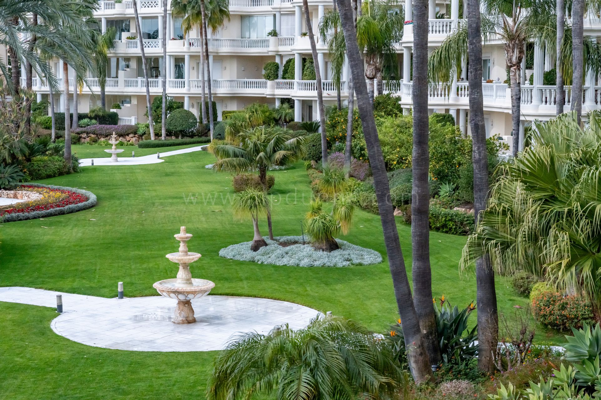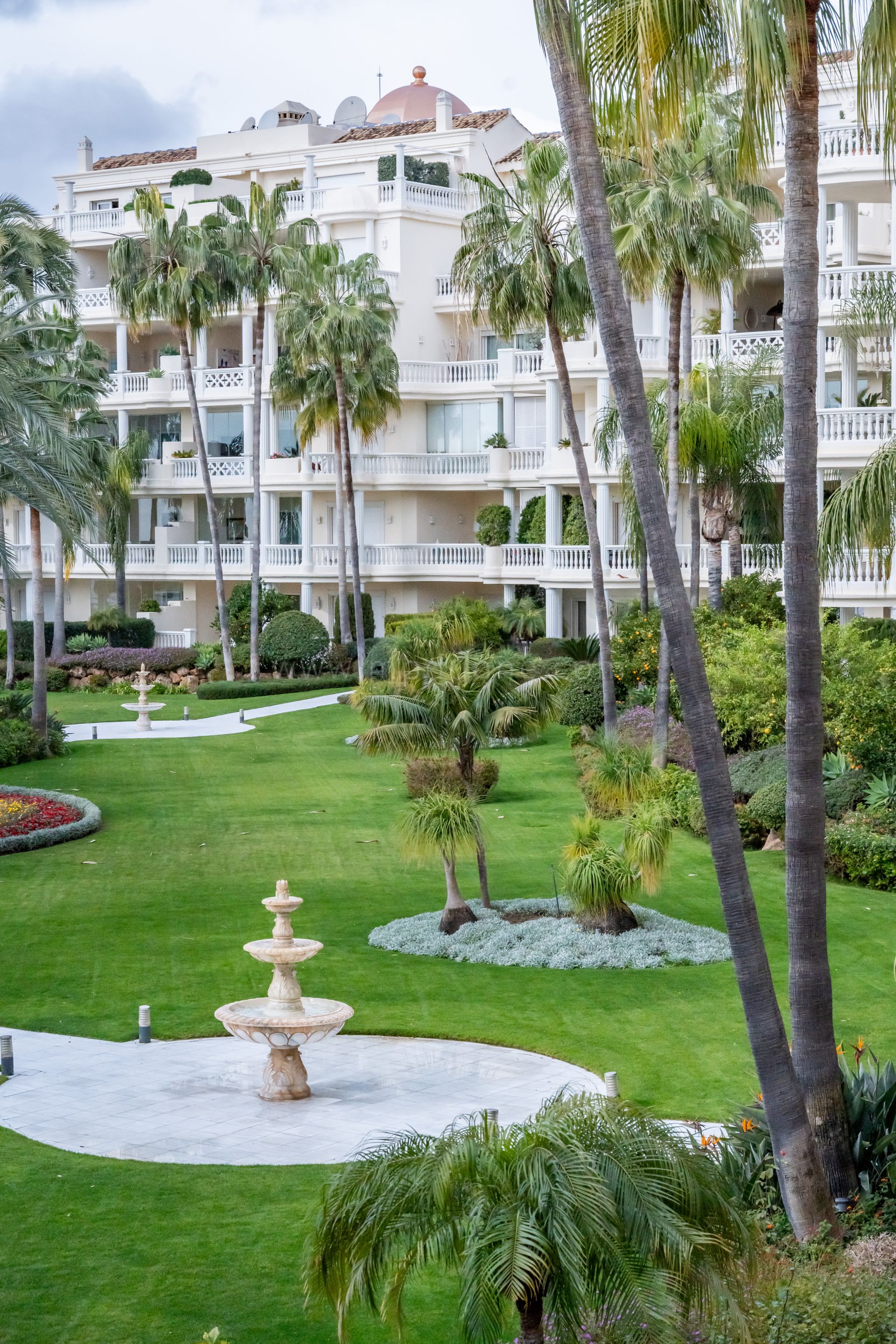 Las Dunas Park is known for its mature tropical gardens and direct access to a wide stretch of sandy beach. Residents benefit from a selection of outdoor pools, including a heated pool for year-round use, as well as sunbathing areas with service. The development offers a secure, gated environment with 24-hour security, underground parking and concierge services, alongside access to wellness facilities including a gym and spa.