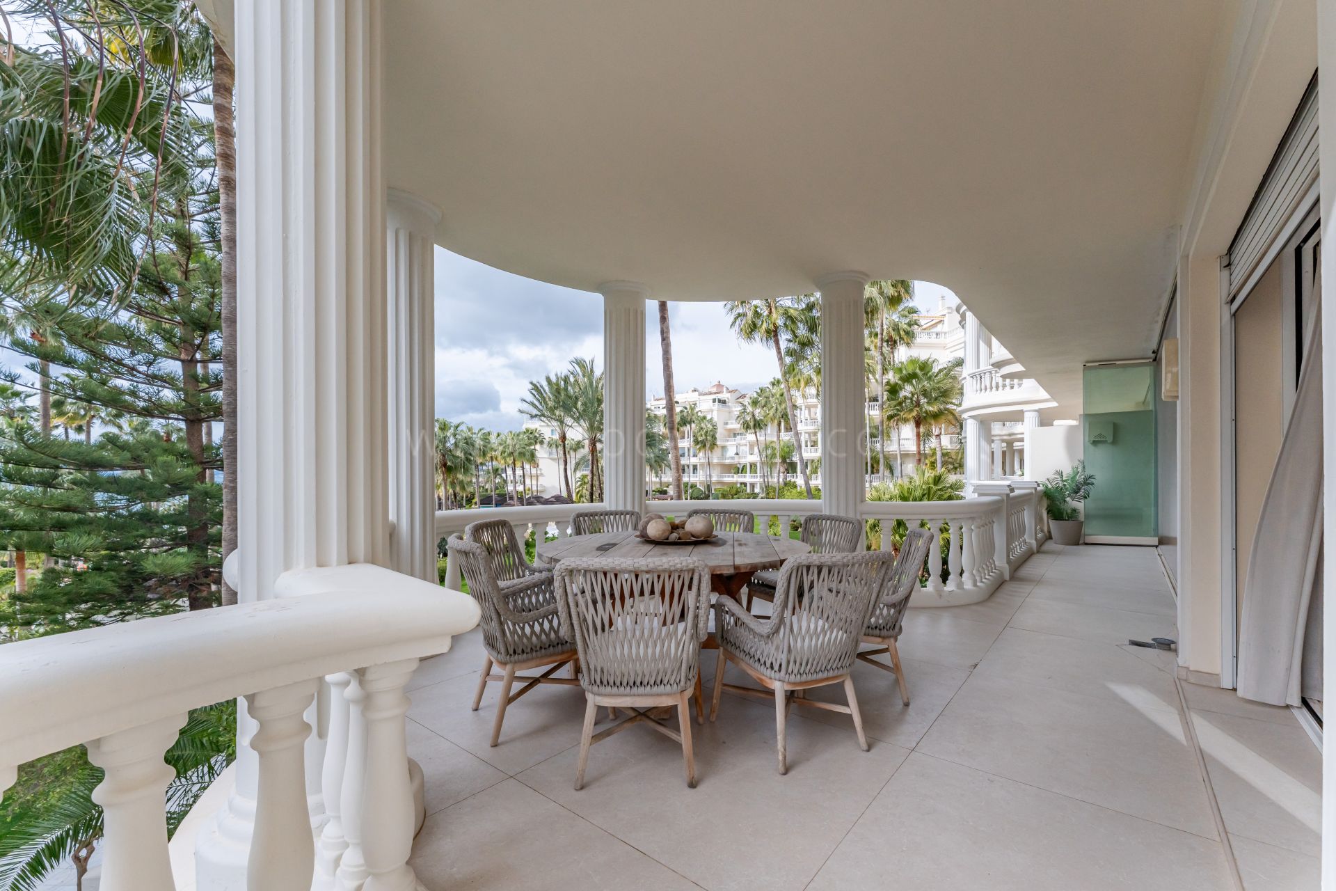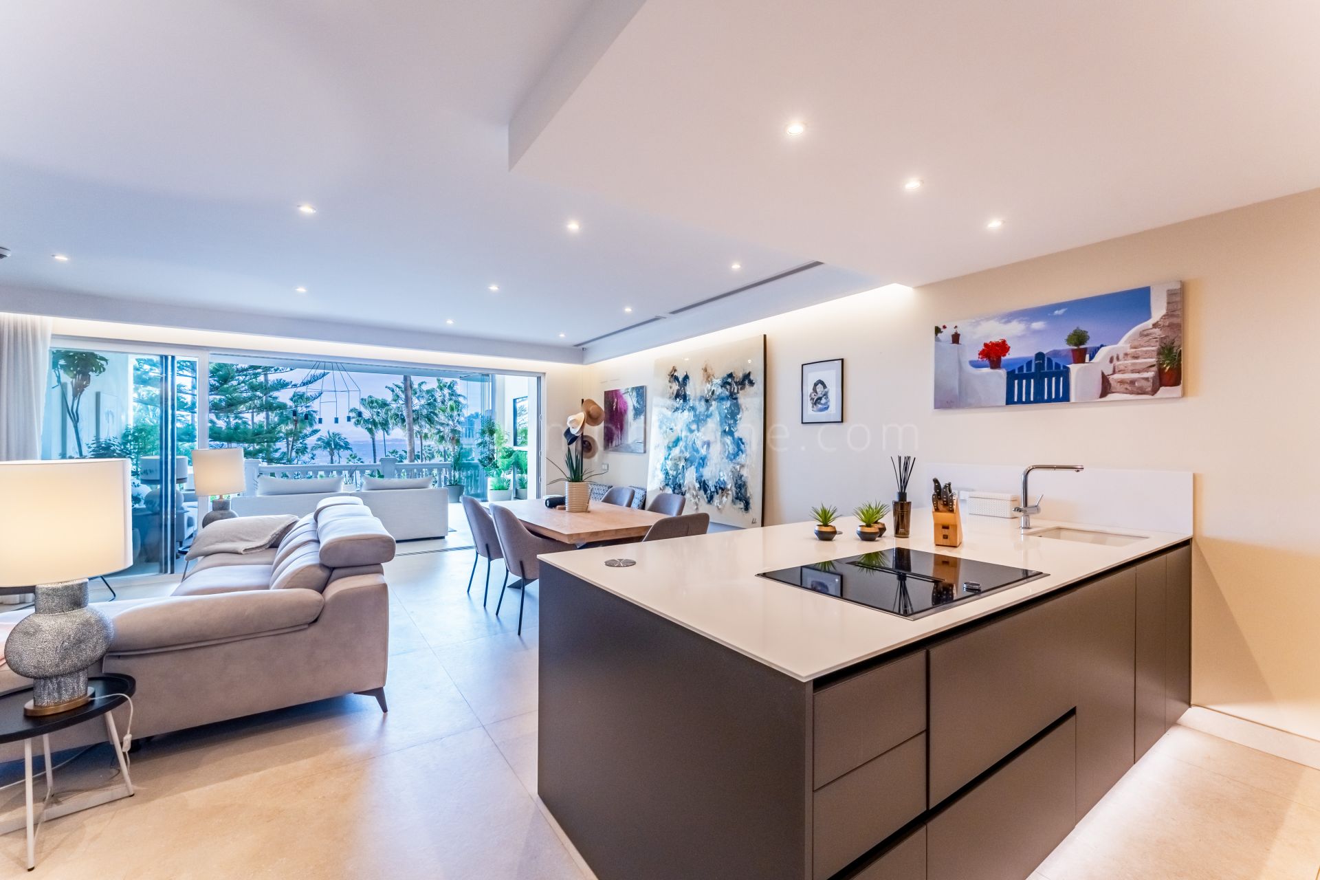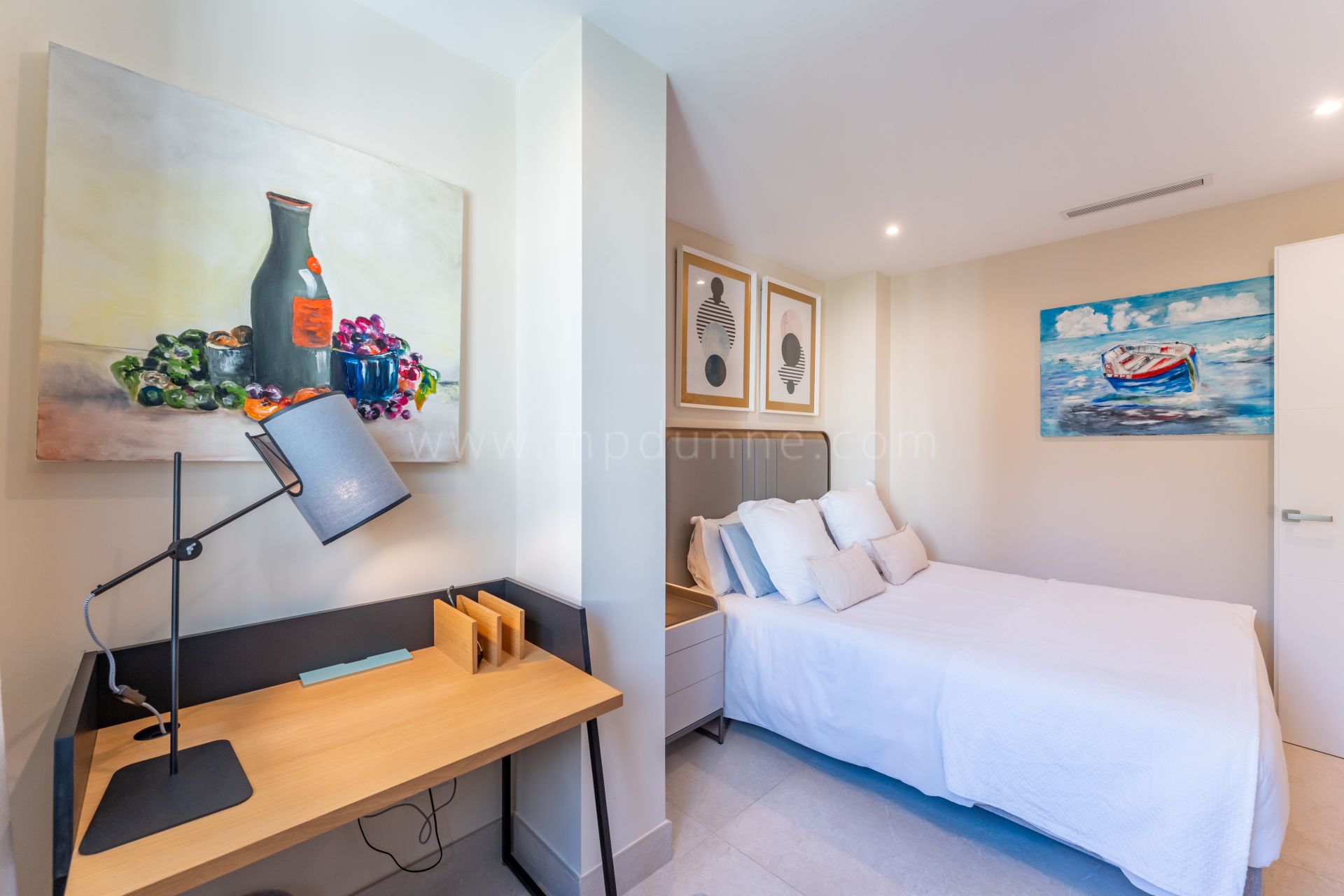 Positioned directly on the beachfront within Las Dunas Park, this elegant apartment offers a rare opportunity to own in one of the New Golden Mile’s most established five-star residential communities. With uninterrupted views across the Mediterranean, the property combines privacy, comfort and immediate access to the coastline.