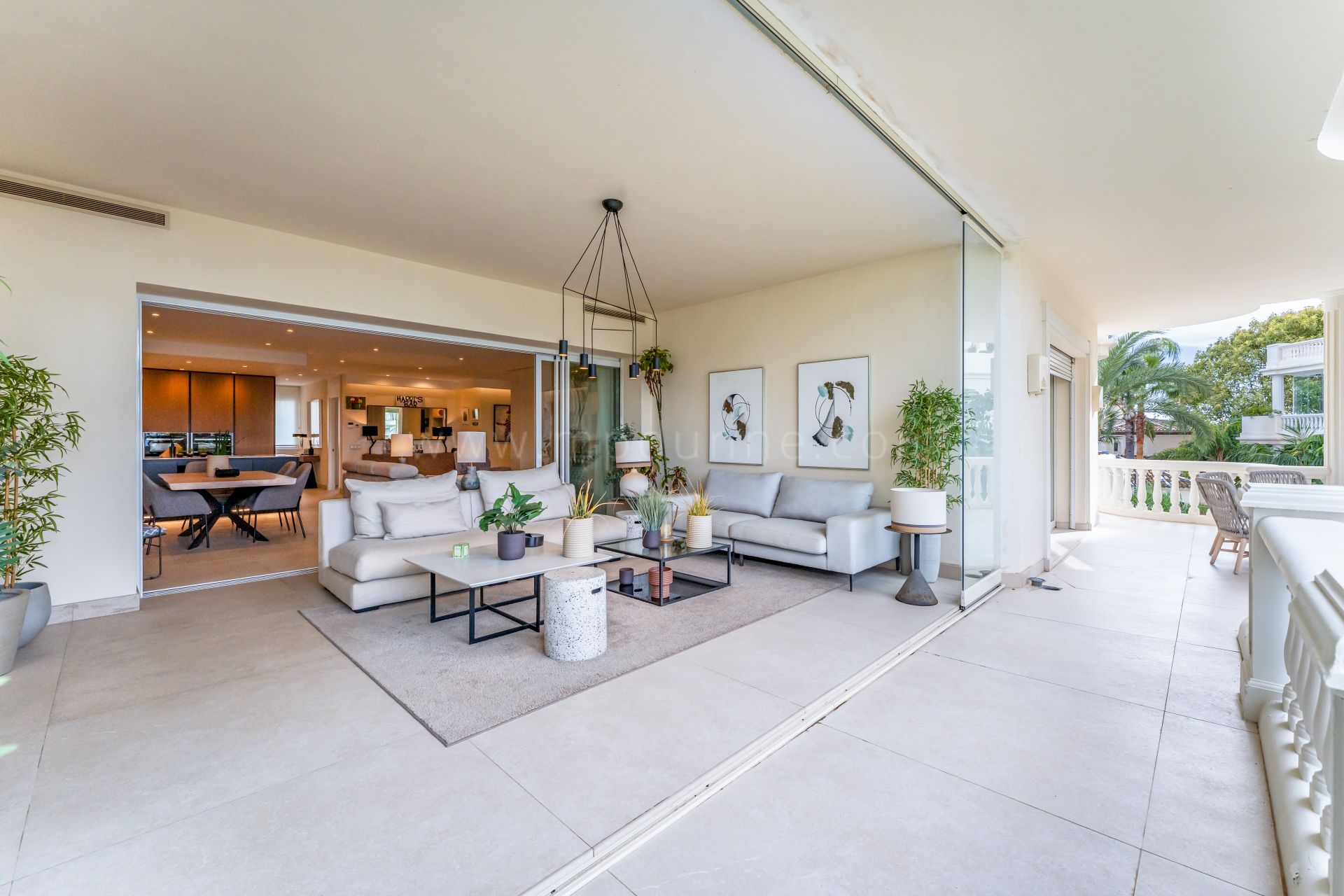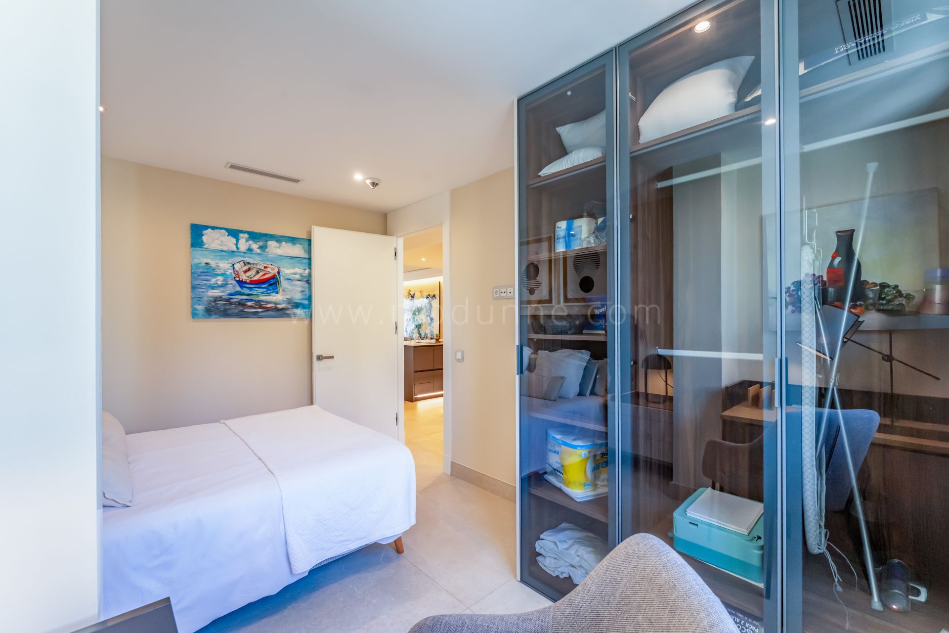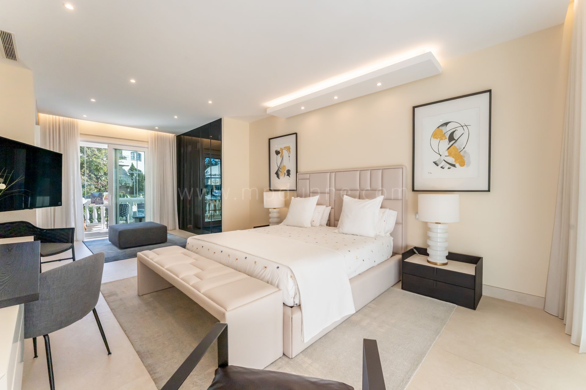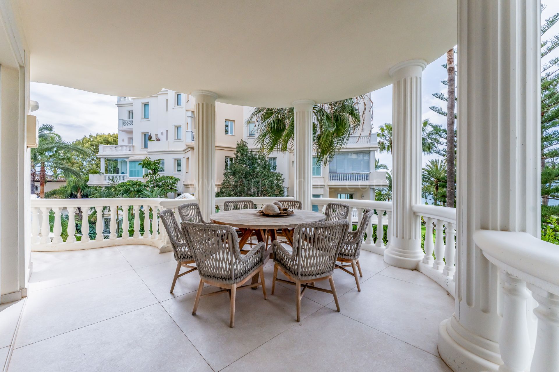 Positioned directly on the beachfront within Las Dunas Park, this elegant apartment offers a rare opportunity to own in one of the New Golden Mile’s most established five-star residential communities. With uninterrupted views across the Mediterranean, the property combines privacy, comfort and immediate access to the coastline.