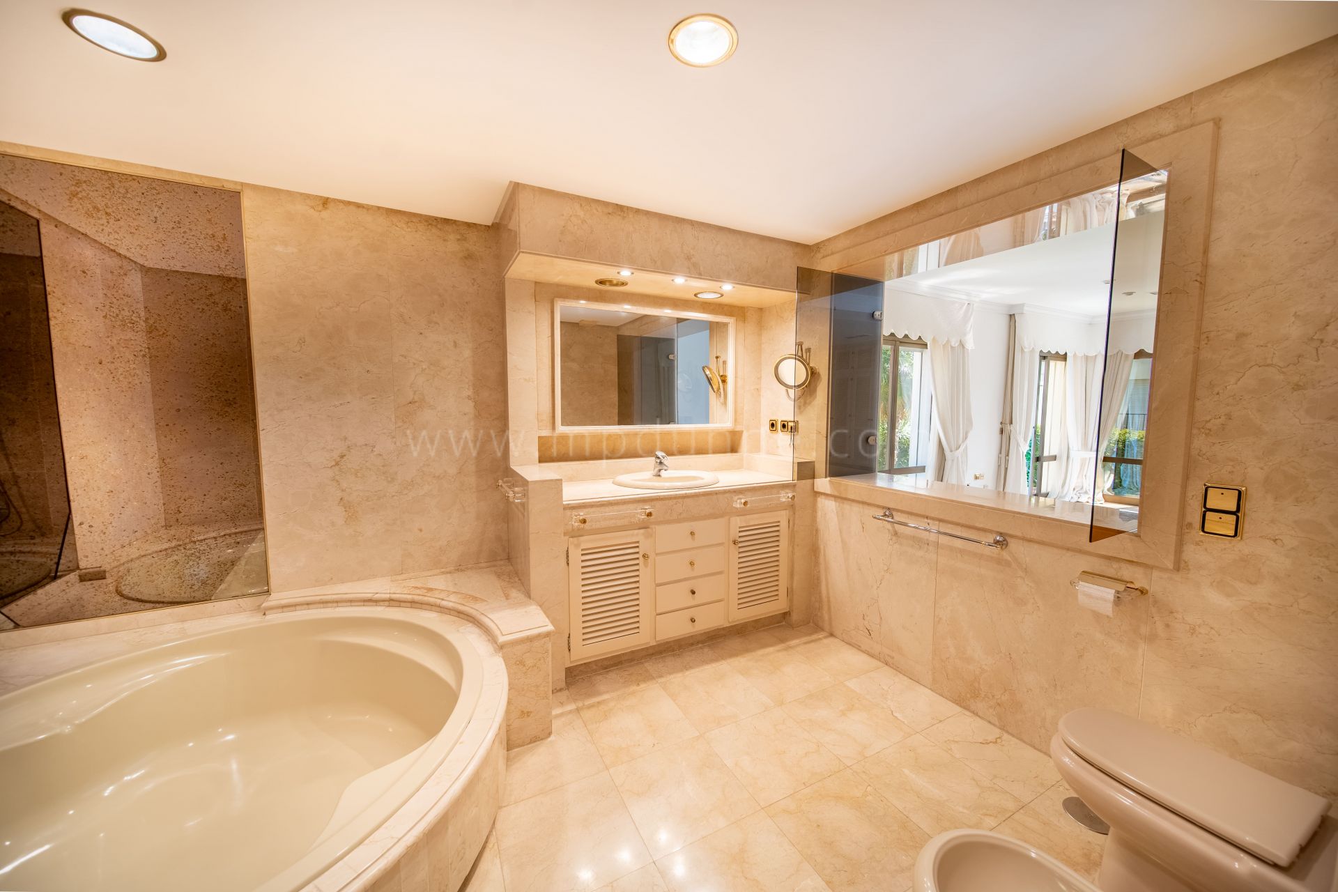 Outside, wide terraces overlook the private swimming pool and garden, creating inviting spaces for outdoor dining, relaxing, and enjoying Marbella’s year-round climate. The setting is residential while remaining close to the beach and nearby amenities.