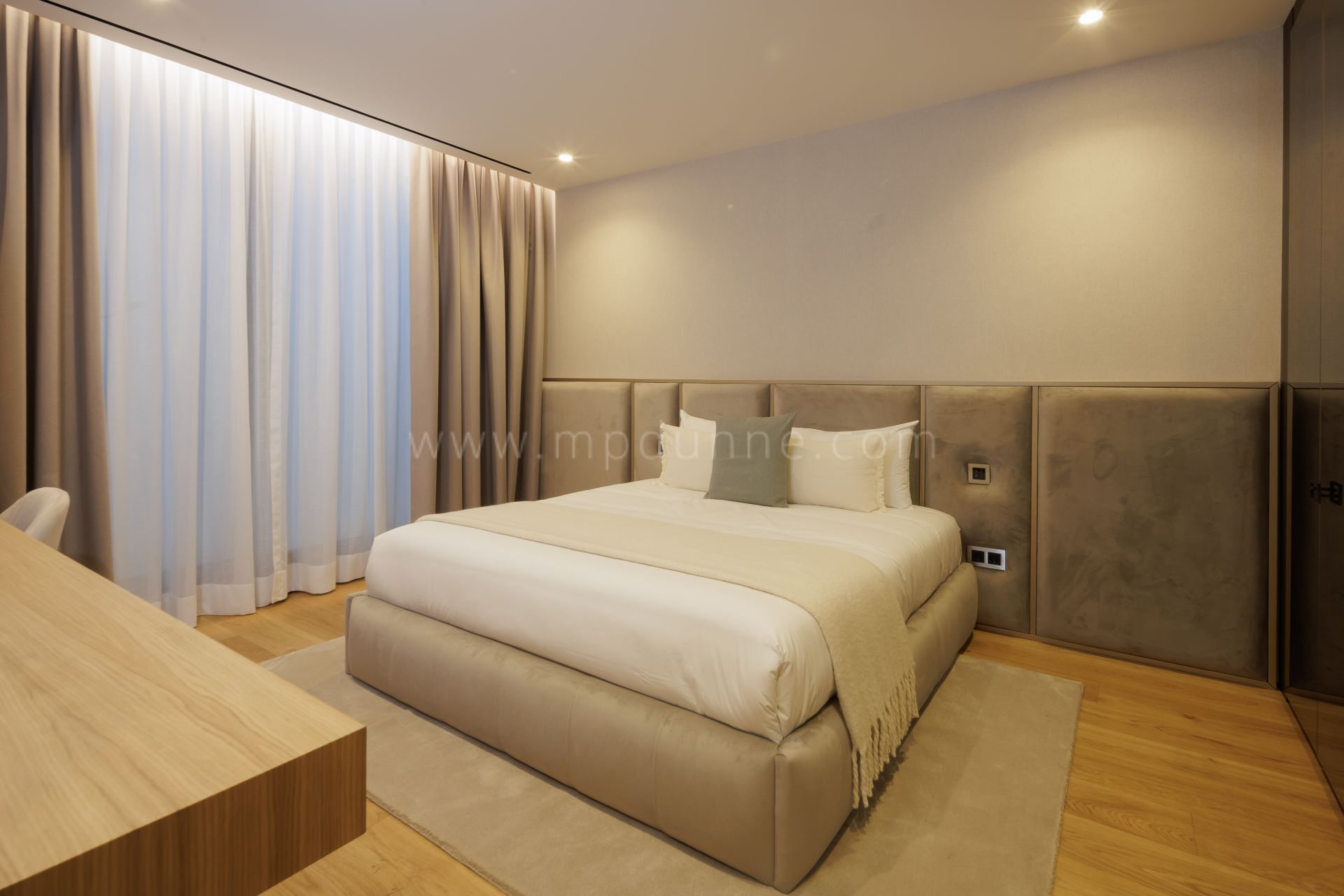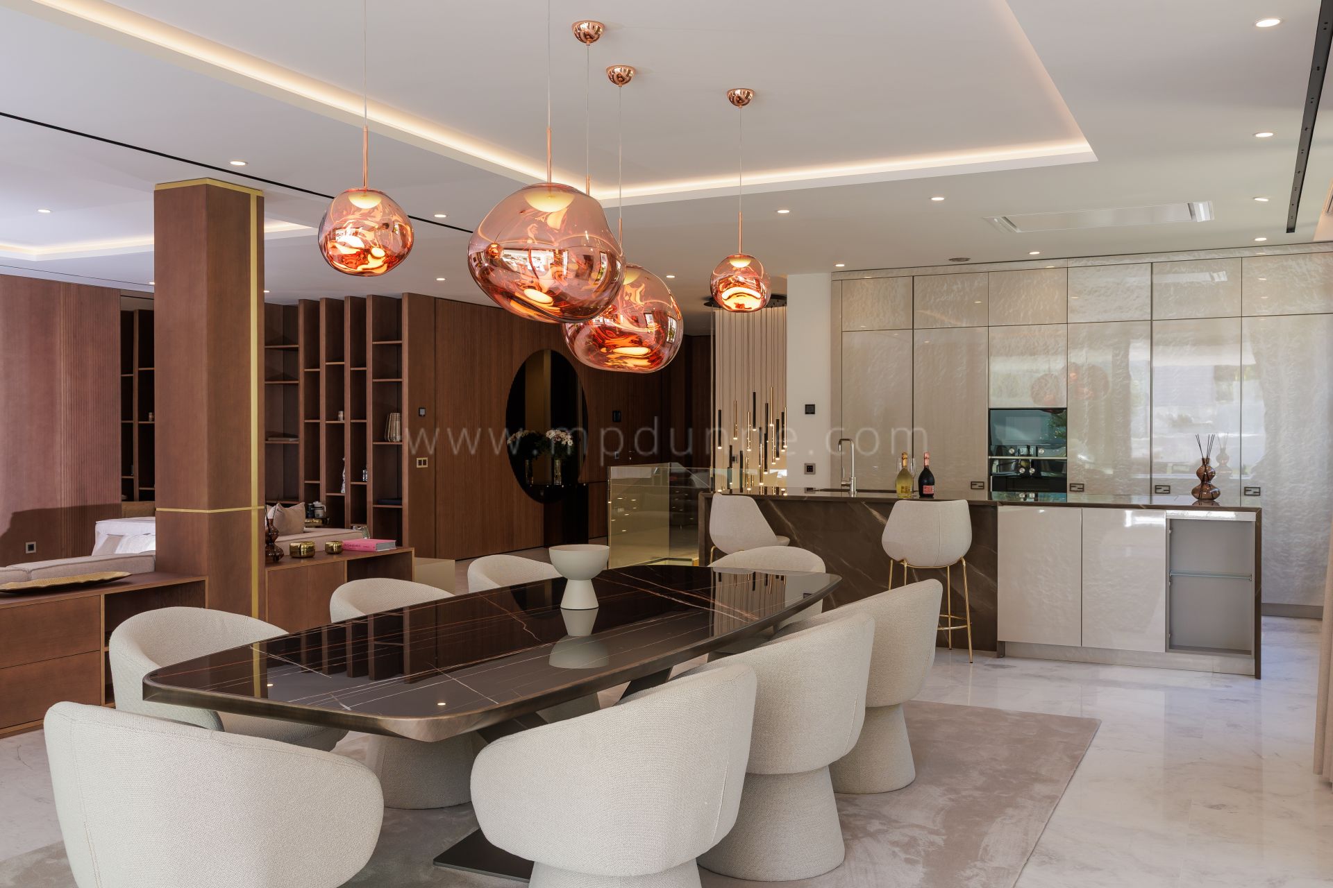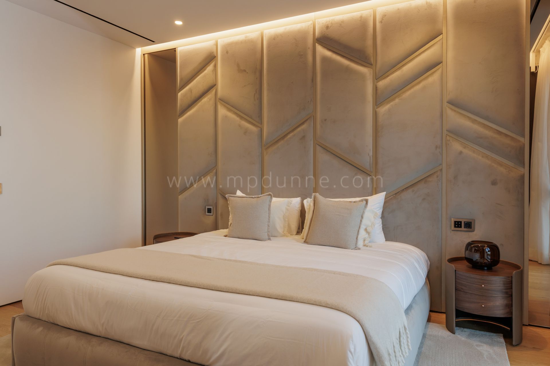 The interior has been meticulously customised with Fendi Casa furnishings and bespoke finishes, creating a refined and cohesive living environment. A generously sized double lounge flows into a state-of-the-art kitchen, where clean lines and high-quality materials define the space. Two bedrooms are positioned for comfort and privacy, complemented by sleek built-in wardrobes that blend functionality with design.