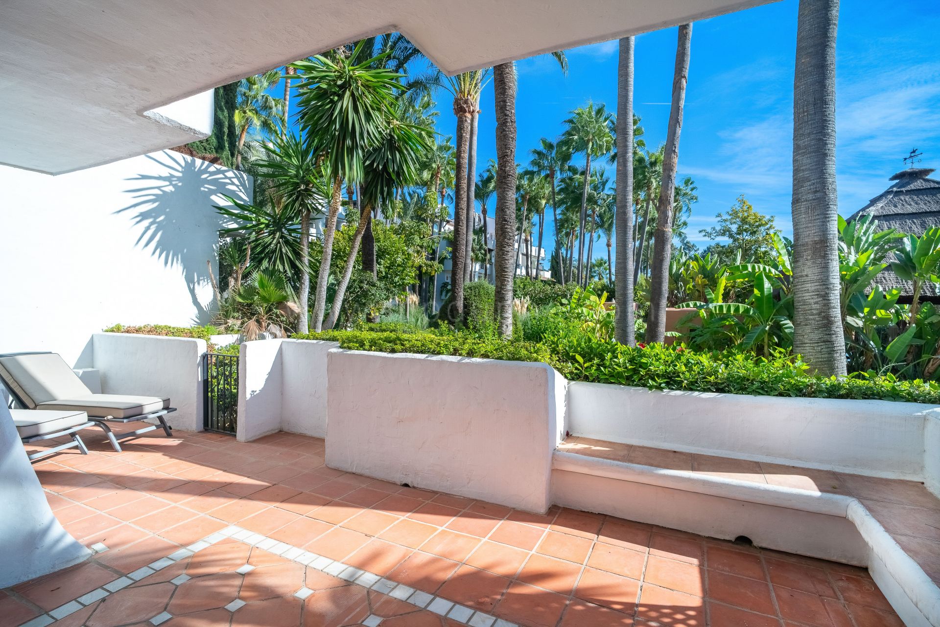 The apartment enjoys direct access from its sunny terrace to the communal swimming pool and landscaped gardens, offering seamless indoor-outdoor living. It also includes a private underground garage and storeroom, making it an ideal holiday home or investment property on Marbella’s Golden Mile.