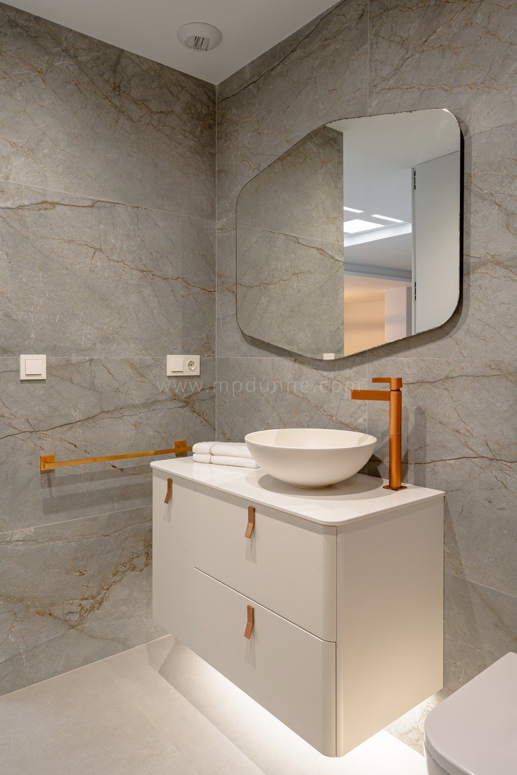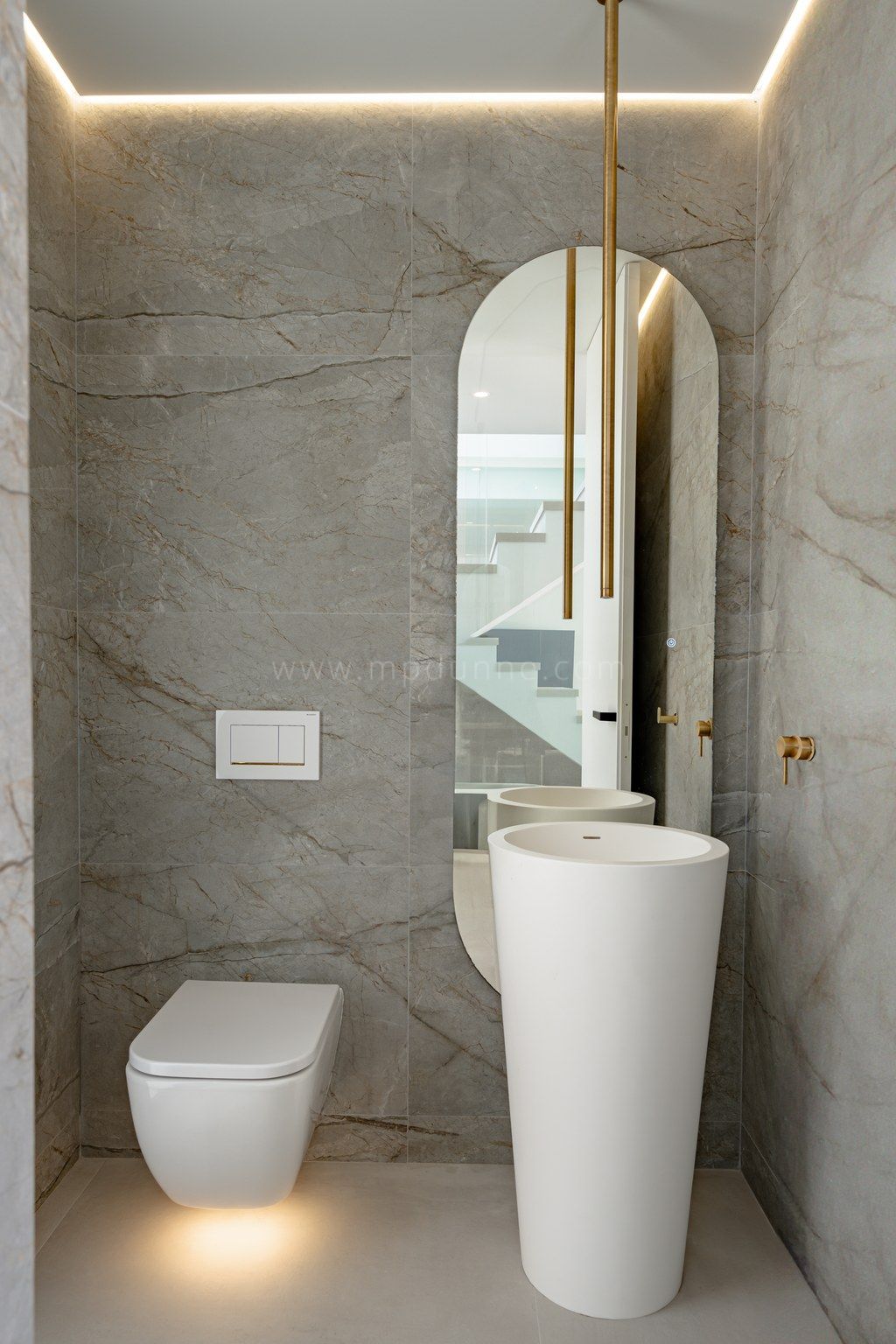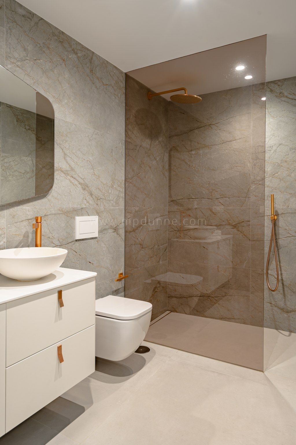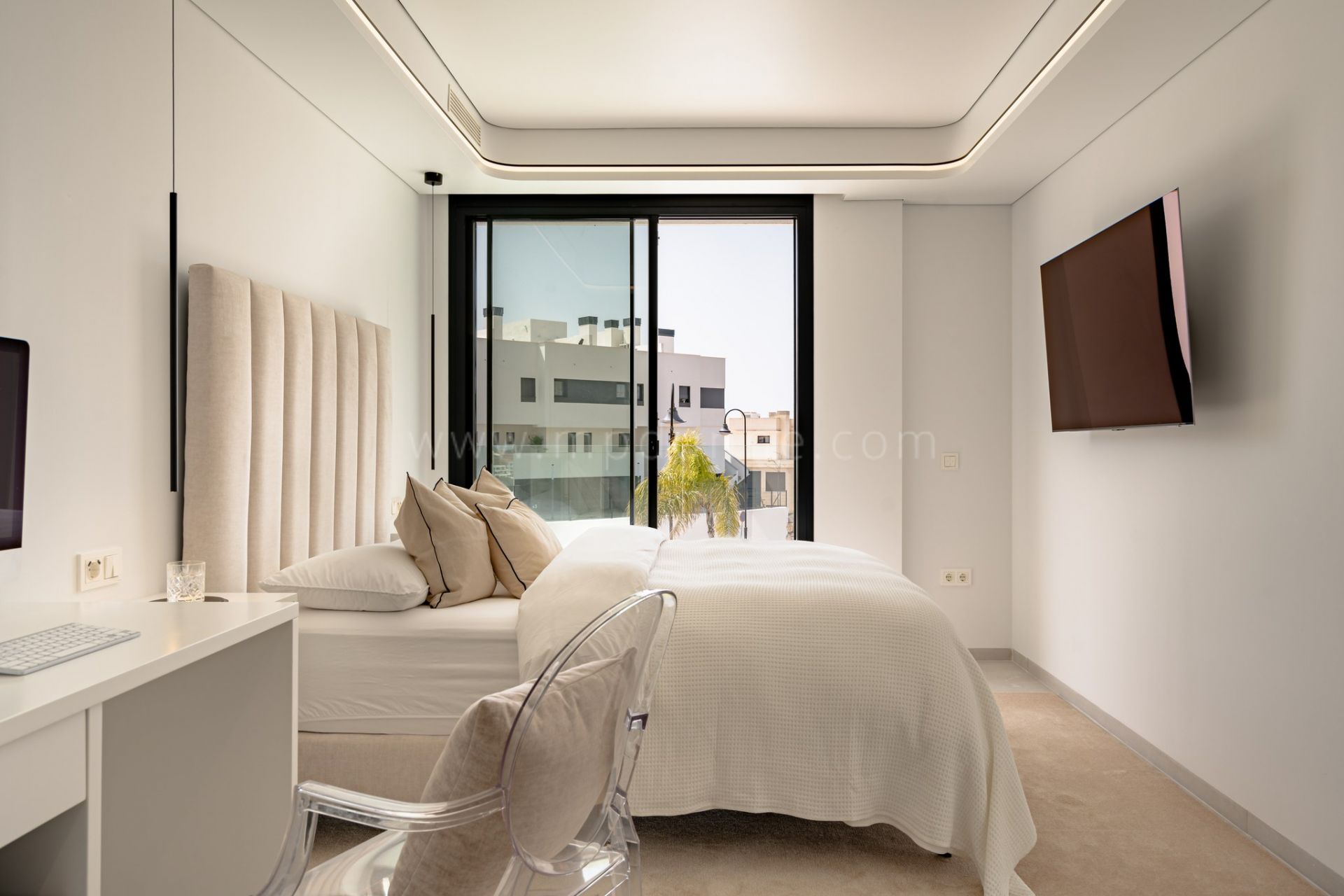 The villa’s four bedrooms are bright and well-proportioned, including a main suite with a walk-in wardrobe, private terrace access, and an en-suite bathroom. Interiors are completed with elegant finishes and considered details, offering a sense of understated luxury.