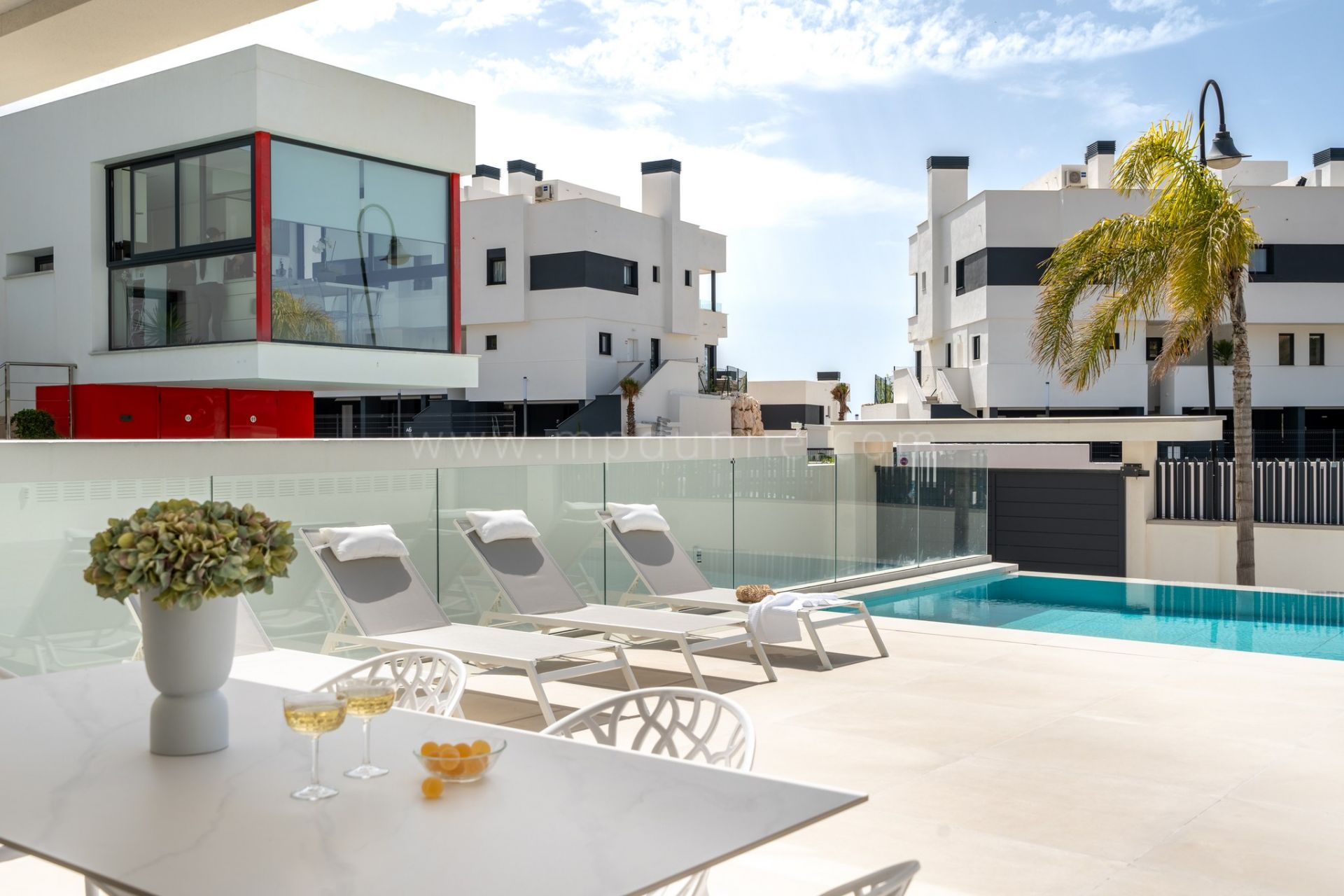 Outside, the south-facing terraces, private pool, and low-maintenance gardens invite relaxation under the Andalusian sun. This home provides an ideal setting for both entertaining and enjoying quiet moments in a private, sunlit environment.