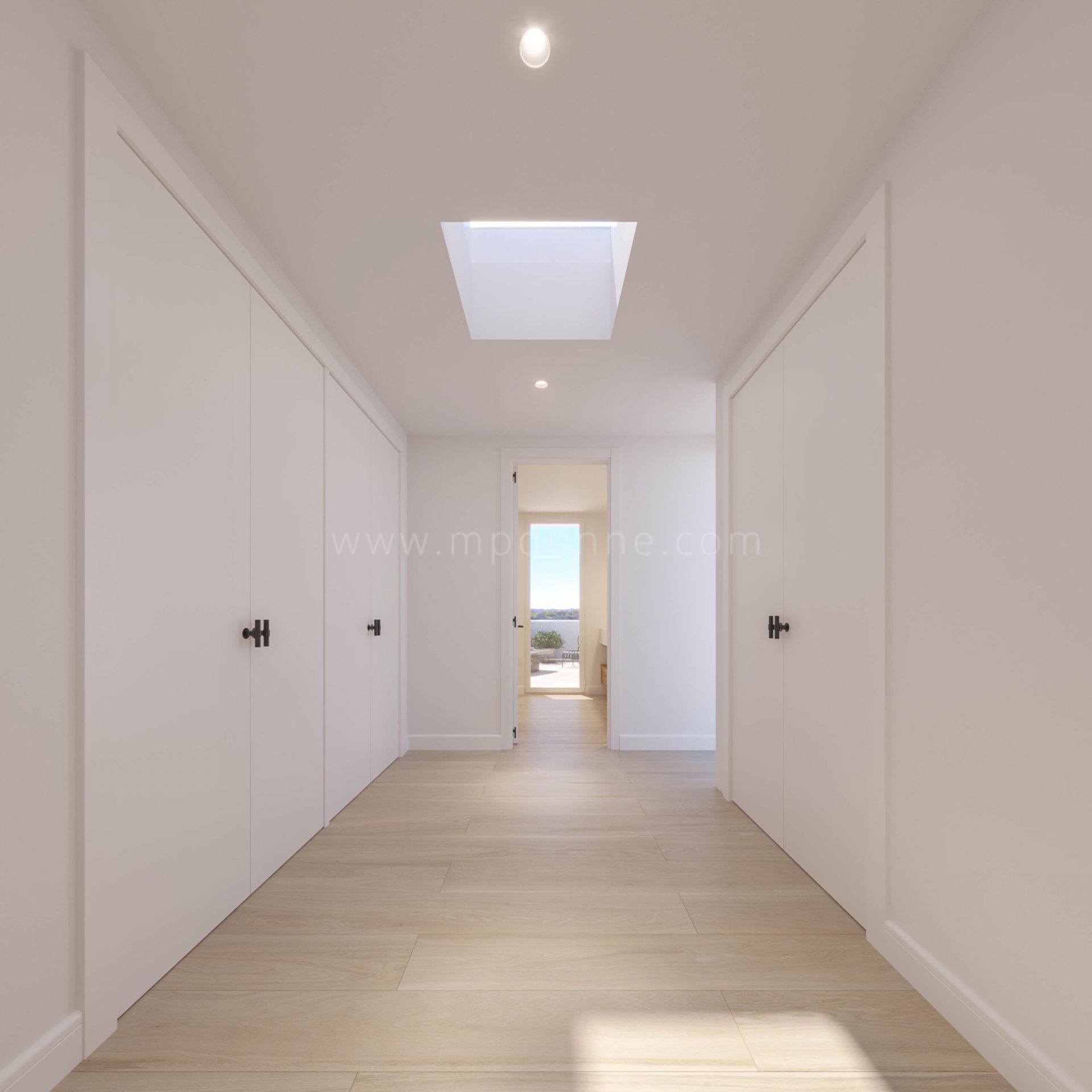 The villa opens seamlessly onto a private garden and a generous terrace, creating a natural flow between indoor and outdoor spaces. The terrace is ideal for relaxing, entertaining, or enjoying the sunshine in complete privacy. Parking for two vehicles is provided.