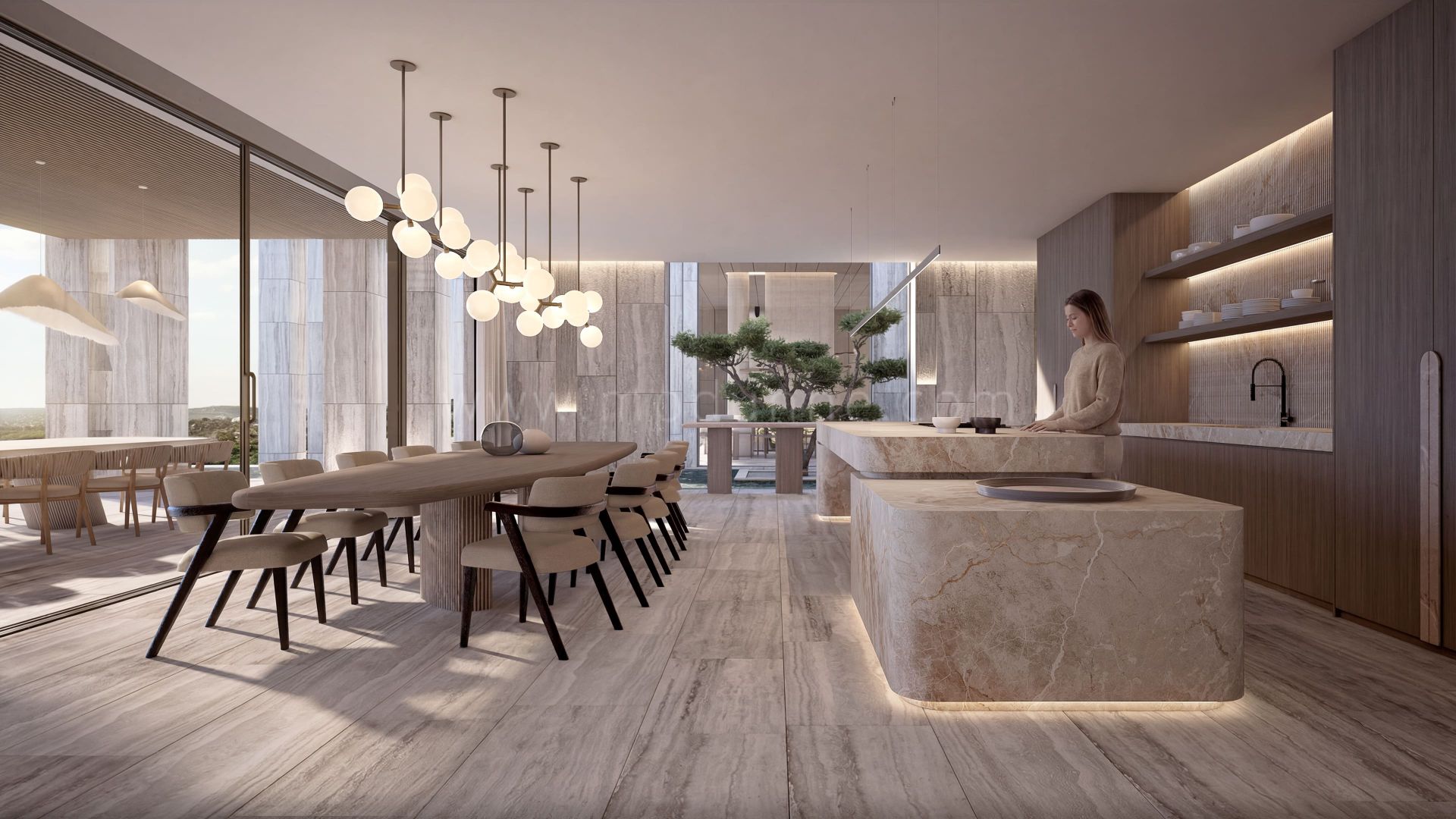 The concept is centred on the architecture of wellbeing, where light, air and proportion shape everyday living. Natural materials, generous volumes and a fluid connection between interior and exterior spaces create an environment that supports calm, focus and comfort over time.