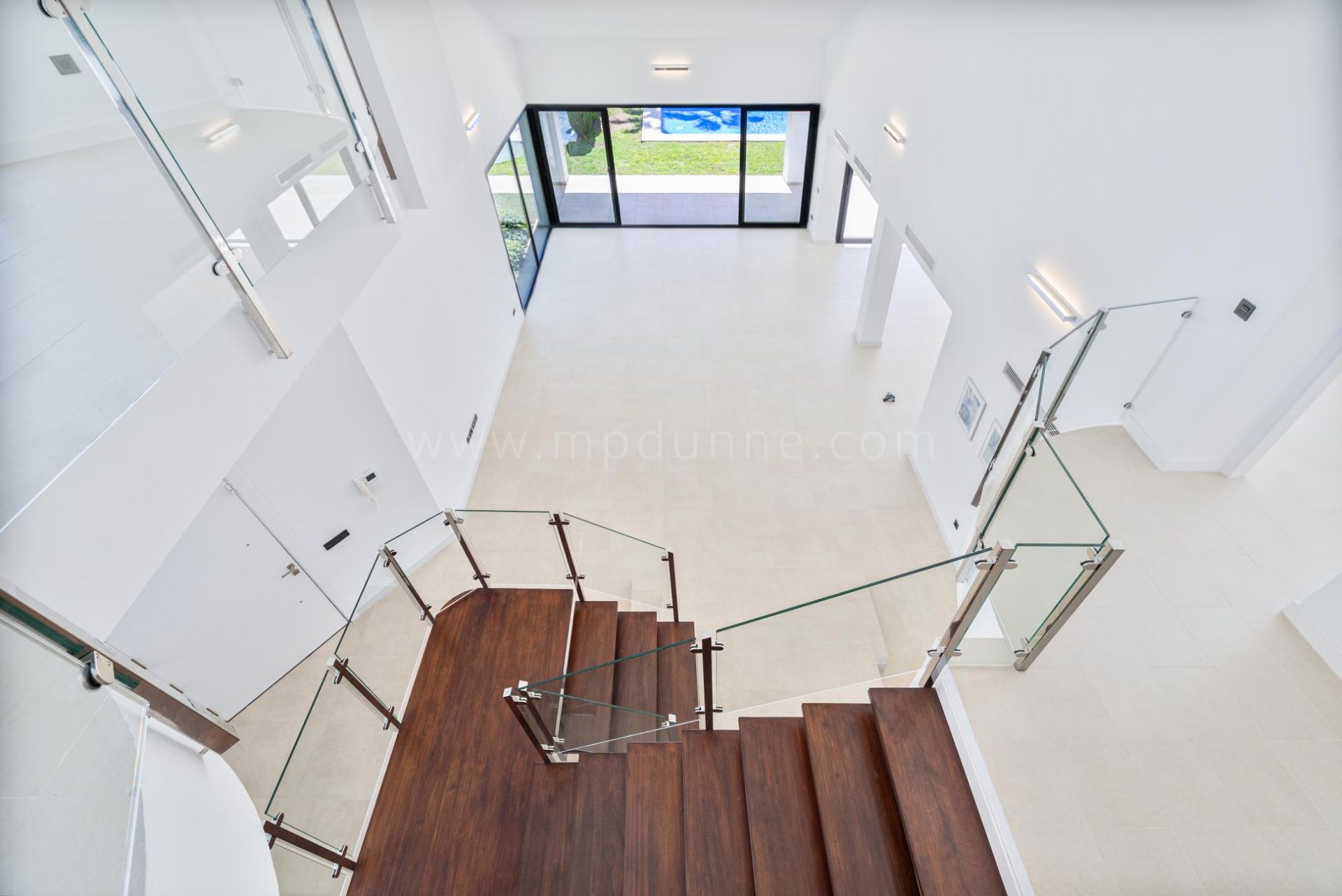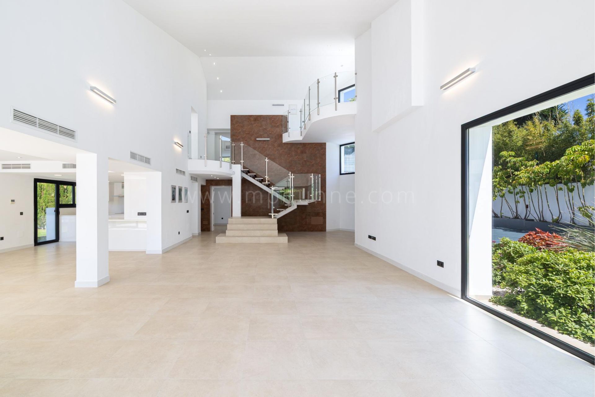 Los interiores de la villa son luminosos y acogedores, con ventanas de suelo a techo que llenan los espacios de luz natural. El amplio salón, con techos altos, se abre directamente a una generosa terraza, creando una conexión fluida entre el interior y el exterior. Una oficina abierta con vistas al salón ofrece un espacio flexible e inspirador.