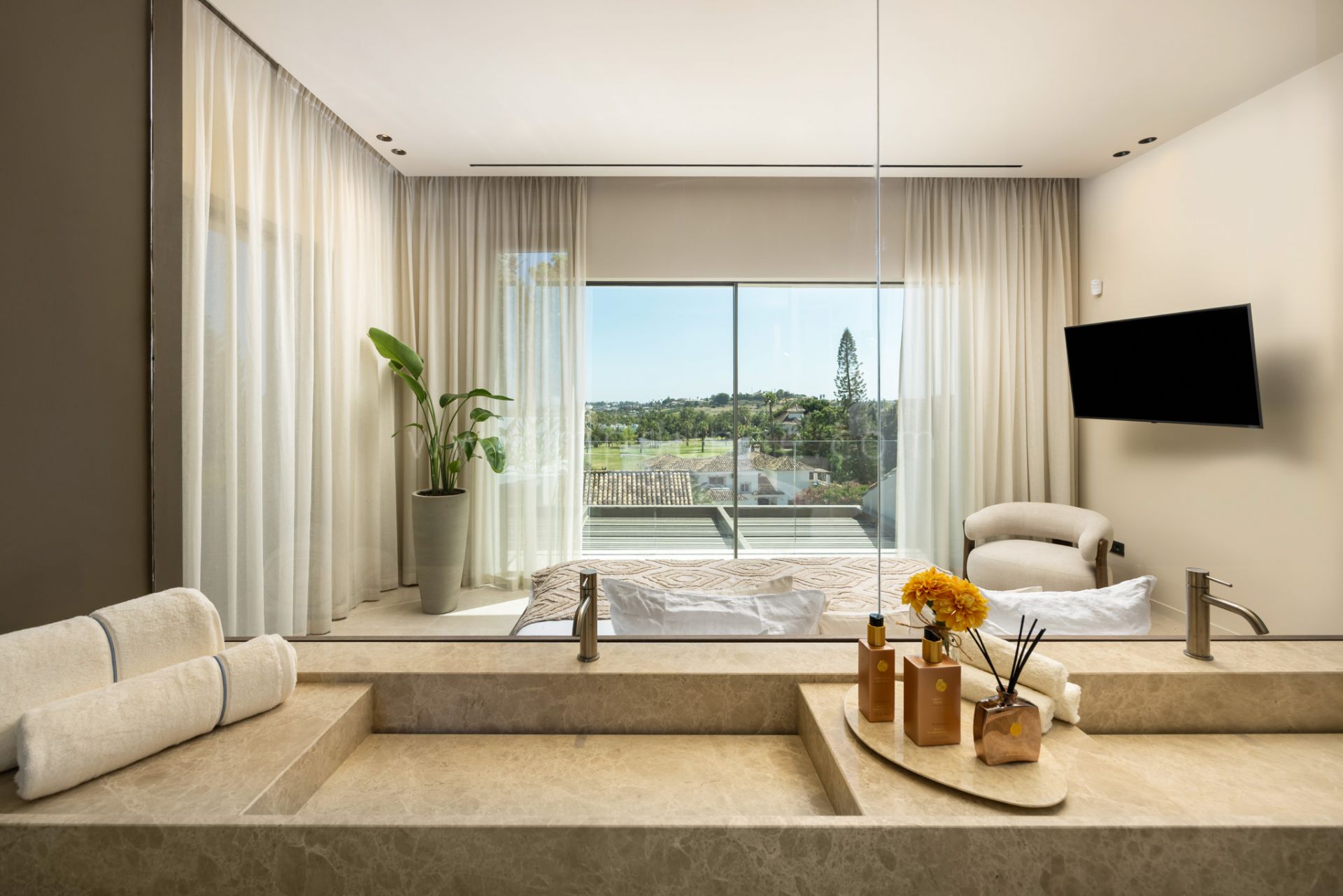 Ubicada en el prestigioso Golf Valley de Nueva Andalucía, Centauro 15 es una villa excepcional que combina arquitectura contemporánea con inspiración boho balinesa y exuberante estética tropical. Completamente renovada y rediseñada en 2025, la propiedad ofrece una experiencia de vida envolvente, donde la luz natural, los materiales de alta calidad y la conexión sensorial con el entorno son protagonistas.
