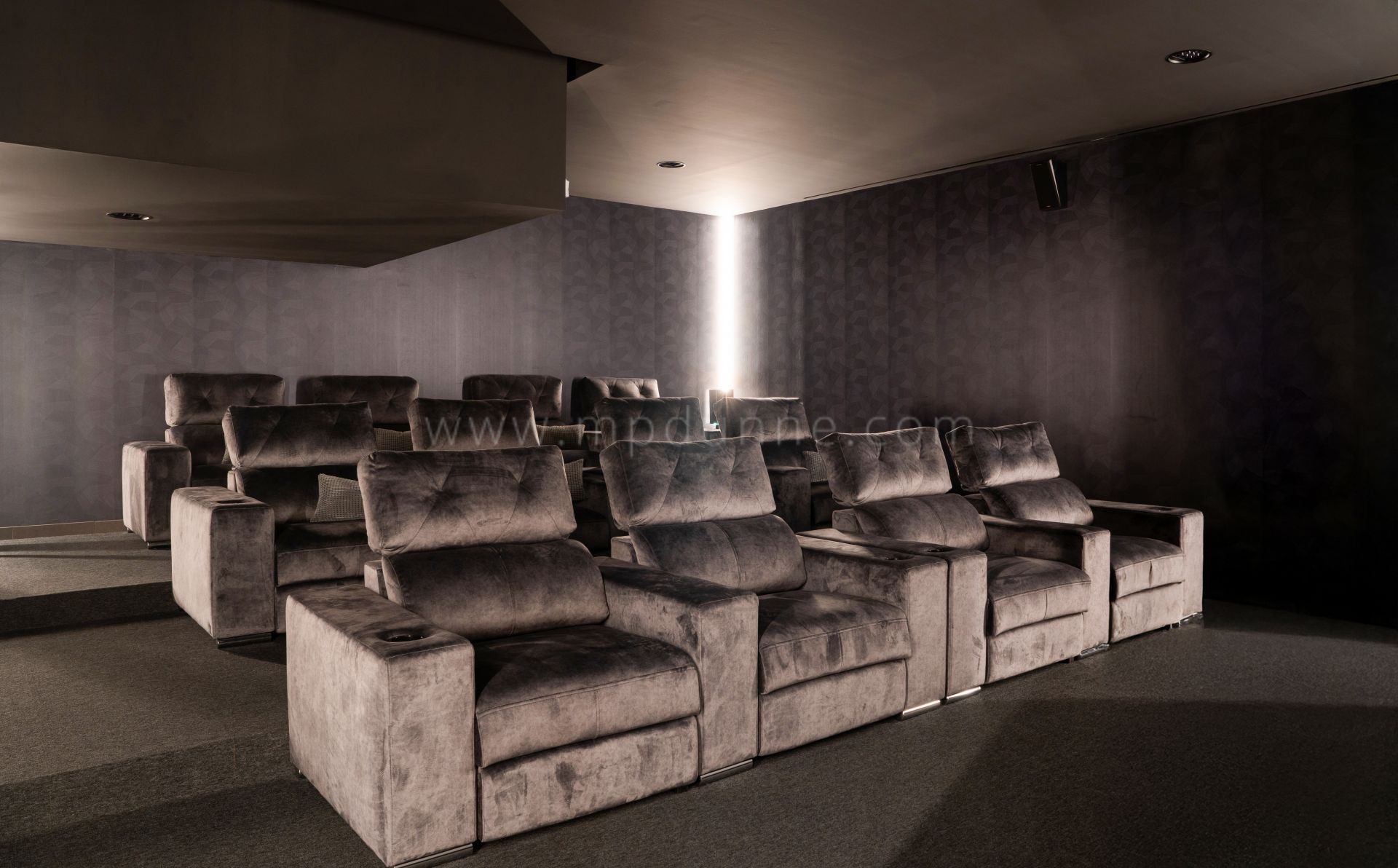 La planta inferior está pensada para el bienestar y el ocio. Incluye una zona de spa privada con piscina cubierta climatizada, sauna, piscina de agua fría, gimnasio y un bar. También hay un cine en casa con asientos, bodega y zona de lavandería.