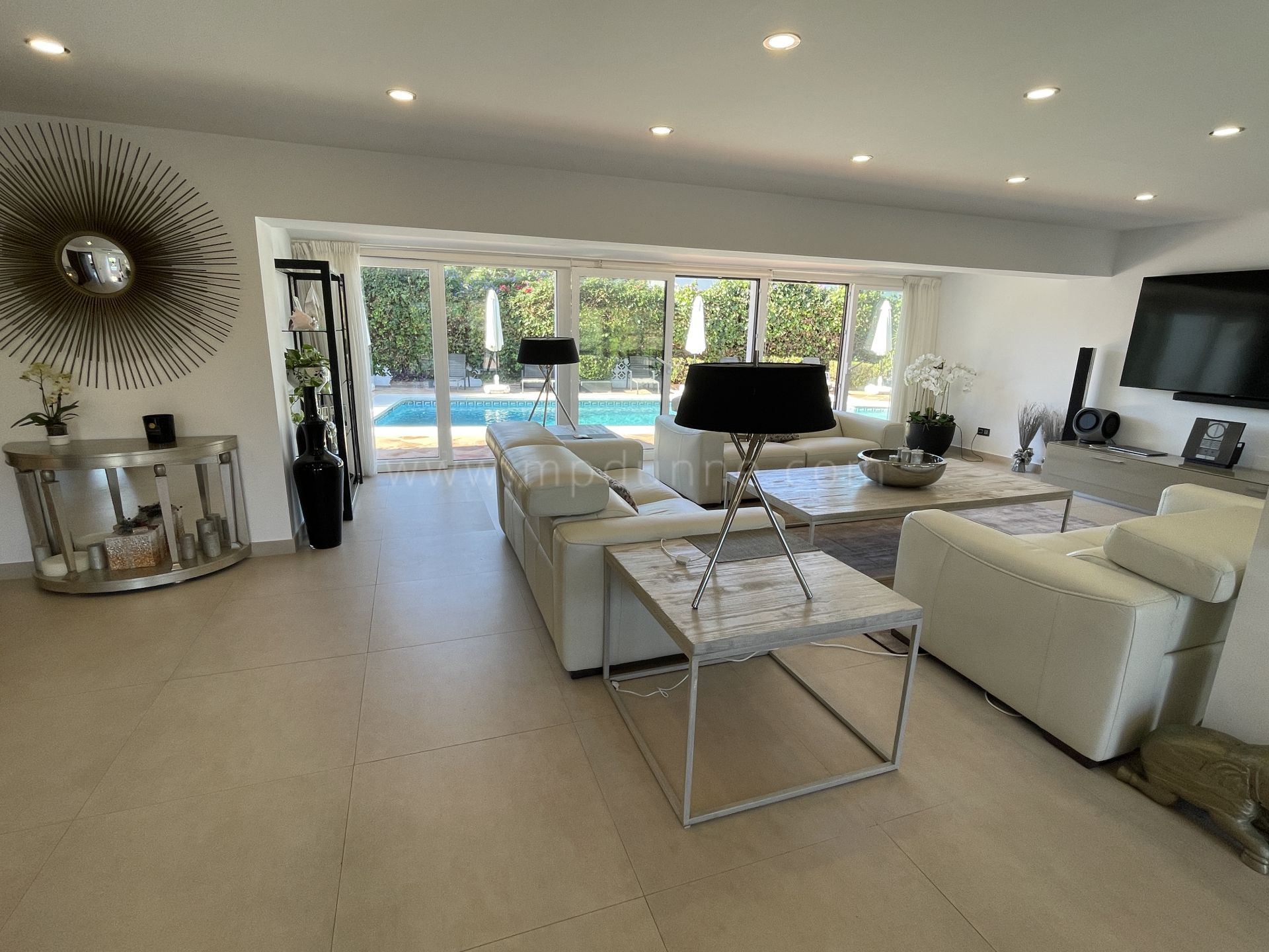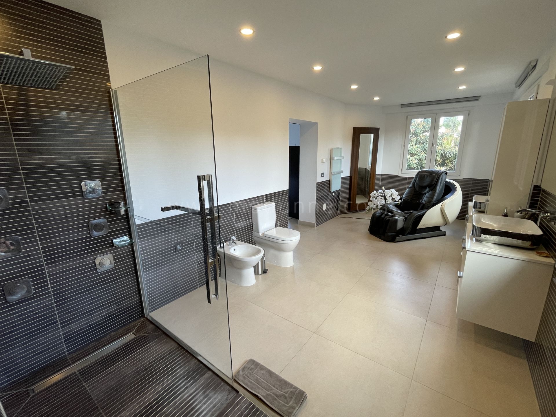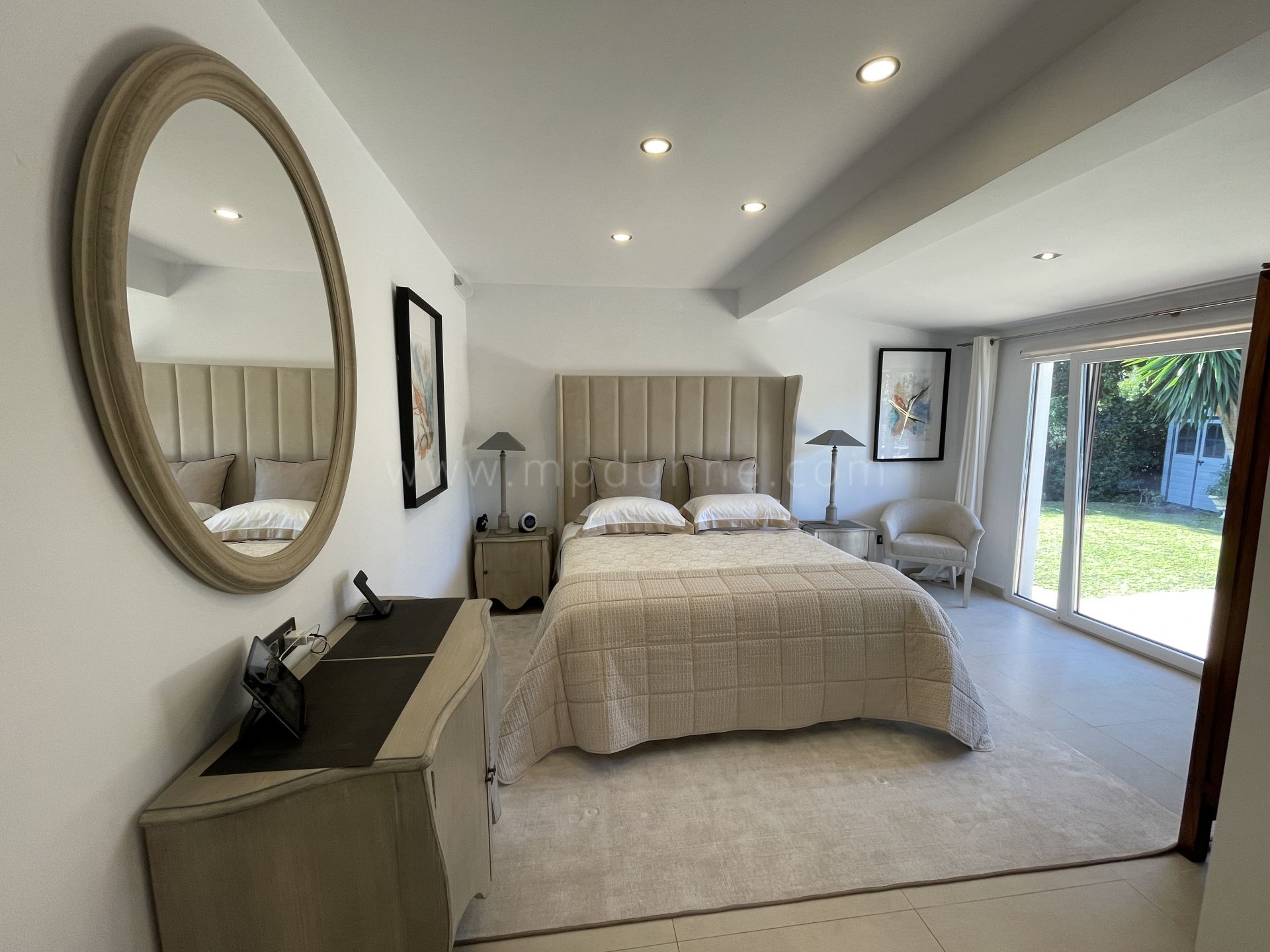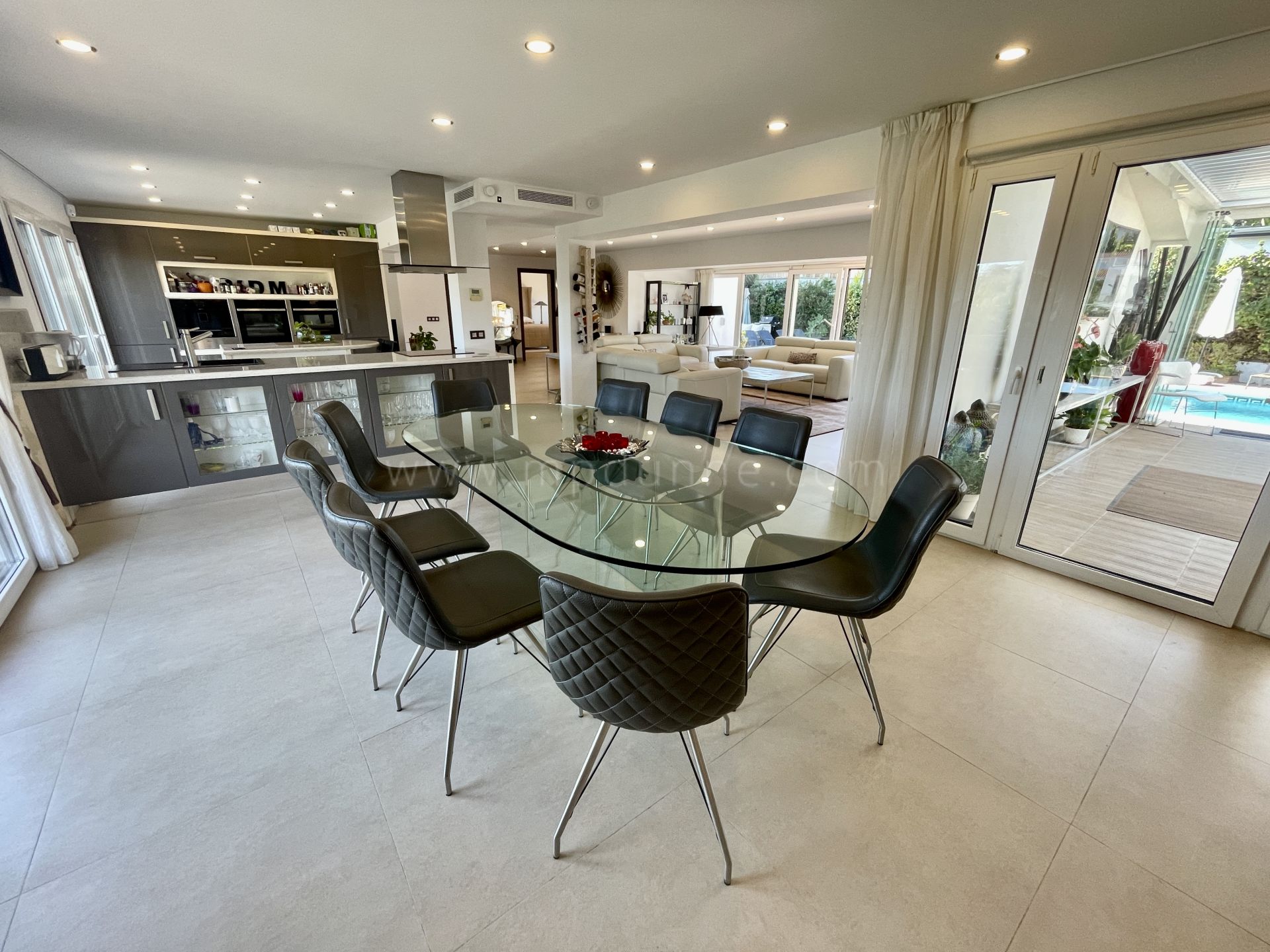 La planta baja incluye una amplia zona de estar, comedor y una cocina Miele de reciente instalación equipada con electrodomésticos de alta gama. Cinco dormitorios con baño en suite tienen acceso directo al jardín mediante puertas correderas.