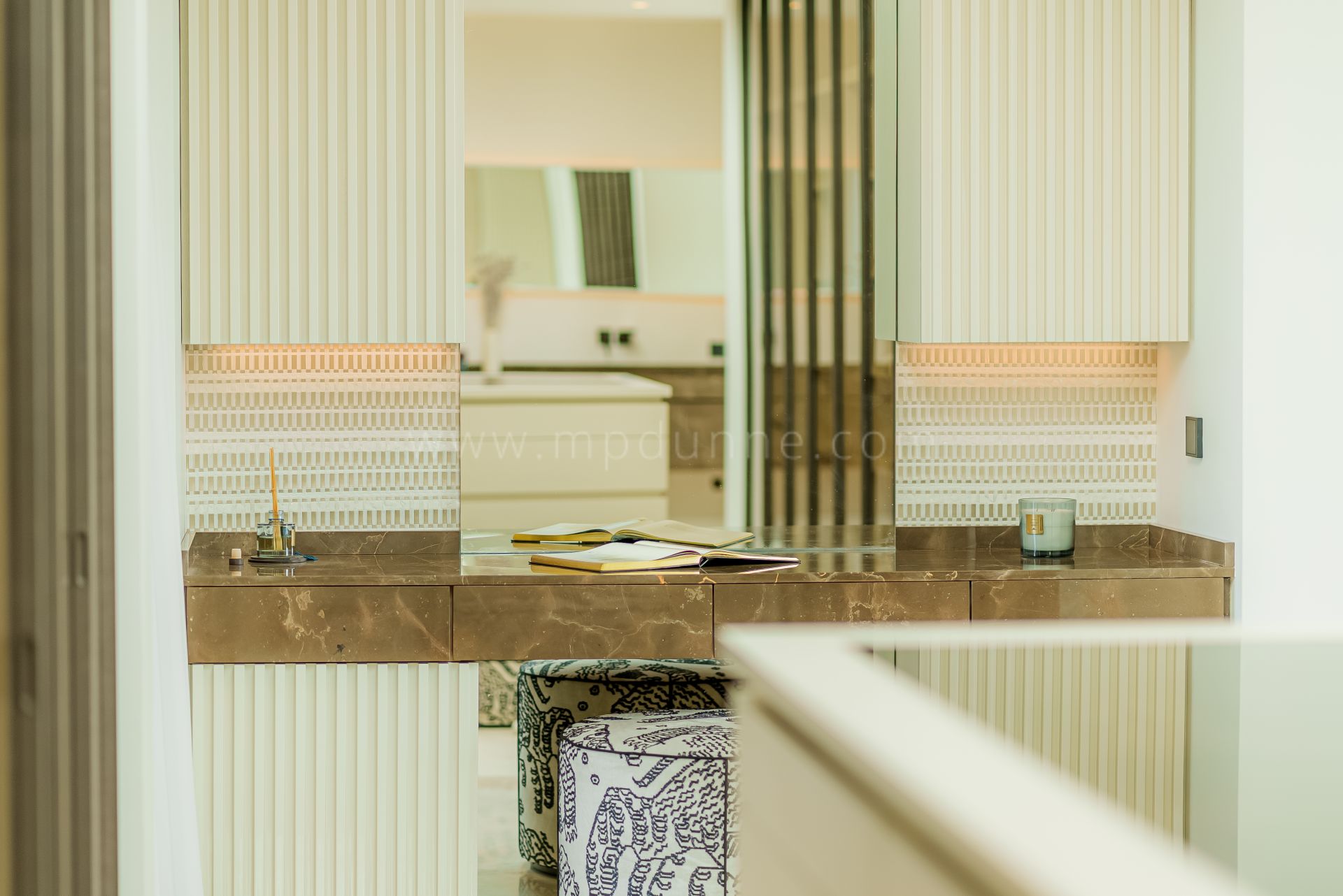 Le niveau principal réunit différents espaces pour se détendre ou recevoir, dont un salon TV, un salon principal avec une grande cheminée et une cuisine Modulnova moderne ouverte sur la salle à manger. Une cave à vin walk-in ajoute une touche singulière. De larges terrasses s’ouvrent depuis ce niveau, créant une transition fluide vers la cuisine extérieure, l’espace repas et la piscine à débordement, tous orientés vers les vues côtières.