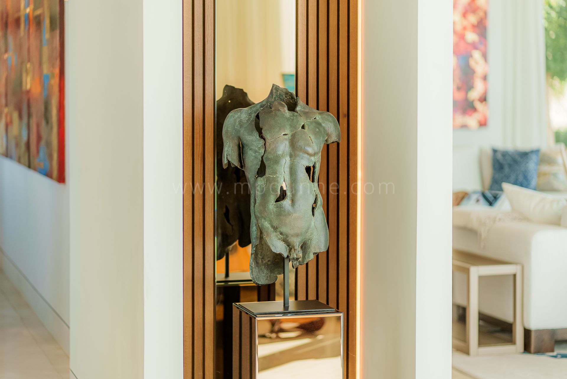 Cette villa contemporaine située dans le cadre sécurisé de Lomas de La Quinta présente une architecture moderne, des intérieurs généreux et des pièces lumineuses offrant de larges vues sur la Méditerranée. Répartie sur trois niveaux avec un accès par l’étage supérieur, l’entrée se distingue par un plafond double hauteur qui introduit une impression d’espace ressentie dans toute la maison. Cet étage regroupe plusieurs chambres bien proportionnées, pensées pour offrir calme et intimité.