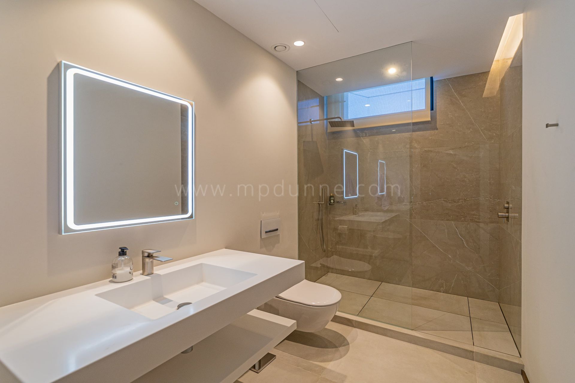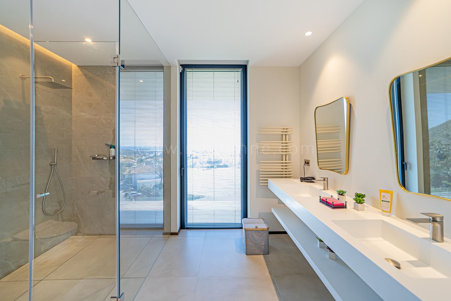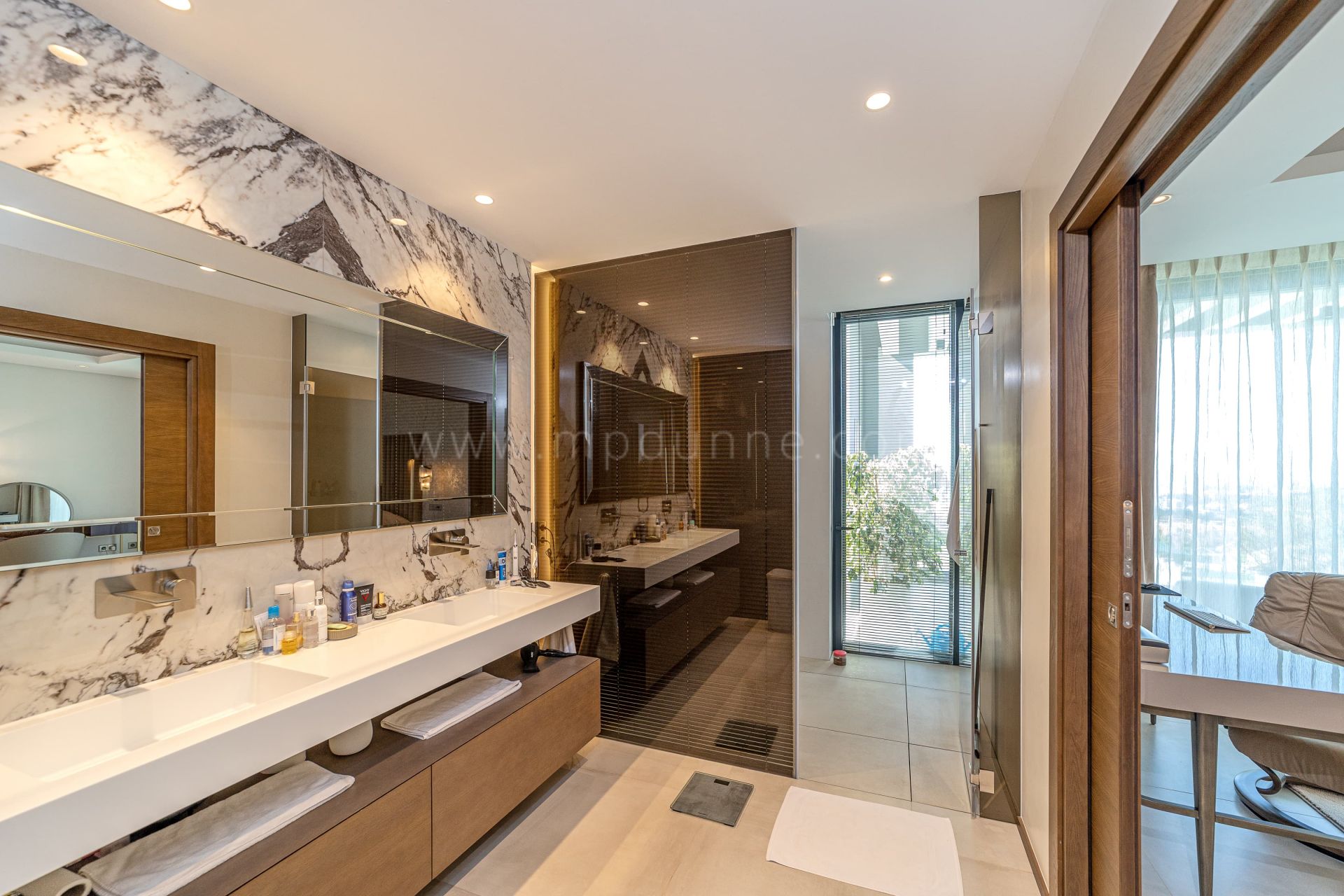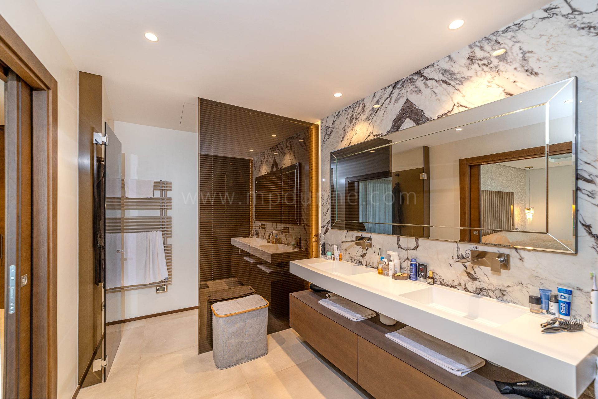 Les équipements de luxe incluent le chauffage au sol, la climatisation et un système domotique pour un contrôle efficace de l’éclairage, du climat et de la sécurité. La villa est équipée d’un ascenseur panoramique pour un accès facile à tous les niveaux.