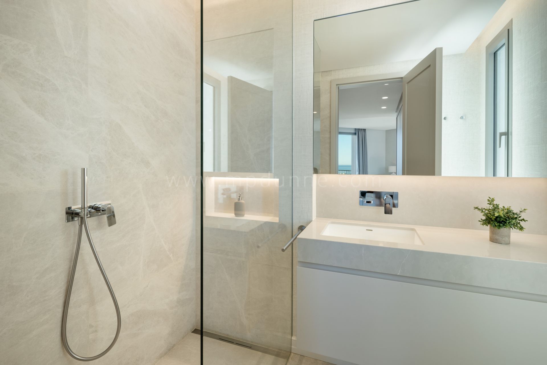À l’intérieur, la villa a été conçue pour offrir espace, lumière et confort. Sept chambres, chacune avec salle de bains en suite, assurent intimité et commodité pour la famille et les invités. Les intérieurs marient marbre poli, finitions en bois chaleureux et mobilier sur mesure, créant une atmosphère à la fois accueillante et raffinée. Le vaste salon et la salle à manger s’ouvrent sur de larges terrasses, tandis que la cuisine Danespan de designer constitue un centre à la fois pratique et élégant pour recevoir.